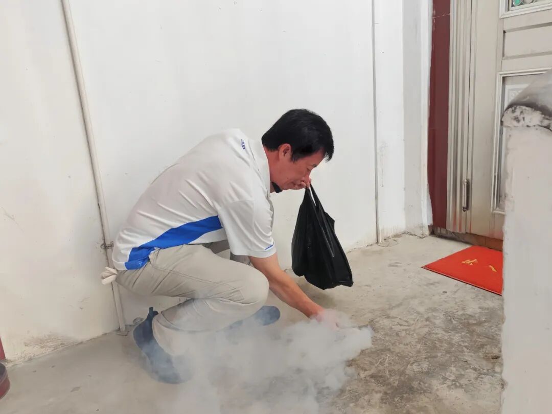 走访的同时,于各楼道的公共区域科学点放灭蚊烟片,通过这一“人防+技防”相结合的举措,直接杀灭成蚊,有效降低了居民生活空间的蚊虫密度。