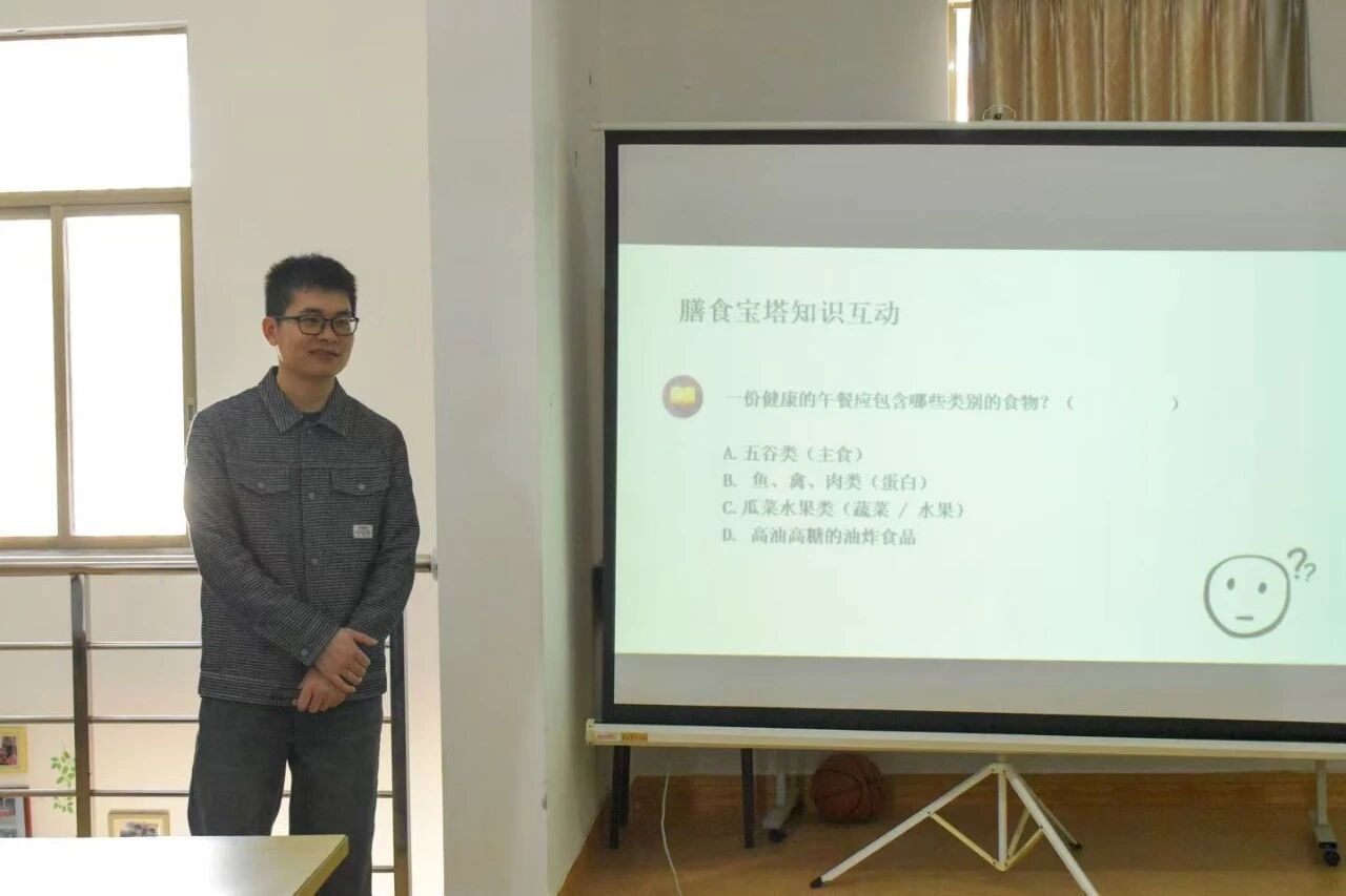 活动现场,黄长荣老师以直观易懂的方式解读青少年专属膳食金字塔,详细拆解谷物、蔬果、肉蛋奶等各类食物的合理配比与摄入分量,用“每天该吃几碗饭、几份菜”的具象化问题引发孩子们思考。趣味问答环节中,青少年们踊跃举手、积极抢答,现场掌声与欢呼声不断,答对的小伙伴领取到小奖品,笑容里满是成就感。