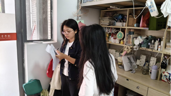 检查期间,辅导员与学生亲切交流,细致了解住宿需求与生活困难,强调宿舍安全,提醒大家养成随手关灯、及时清理垃圾、规范摆放物品等良好习惯。贴心叮嘱与细致排查,既体现了学校严格的管理标准,也传递了温暖关怀,让学生感受到规范管理的同时,体会到学校的用心呵护。