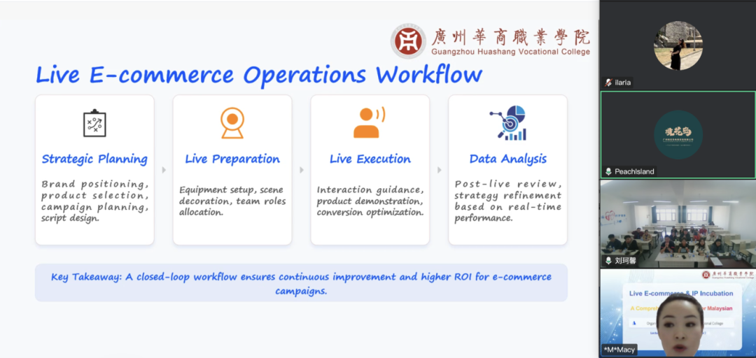 3月28日,广州华商职业学院联合马来西亚国家技术职业培训委员会,共同举办“中马青年跨境电商职业师资培训(直播电商与IP孵化方向)”,培训旨在深化中马职业教育合作,提升两国电商相关专业教师教学能力,助力跨境电商领域人才培养。