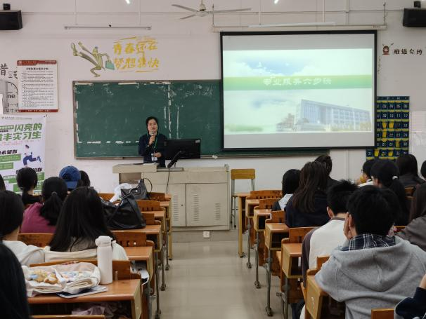 课程中,王爱萍经理介绍了益丰大药房的当前规模与未来发展规划,并详细展示药店就业的晋升路径。随后,康店如主任围绕药店专业服务的“一心、二有、三问、四改、五加、六叮嘱”六个步骤,逐一剖析操作细节,将药店真实工作场景融入教学,帮助学生破除“药店服务仅是售药”的偏见,深刻理解专业服务在提升顾客信任与用药安全中的关键作用。