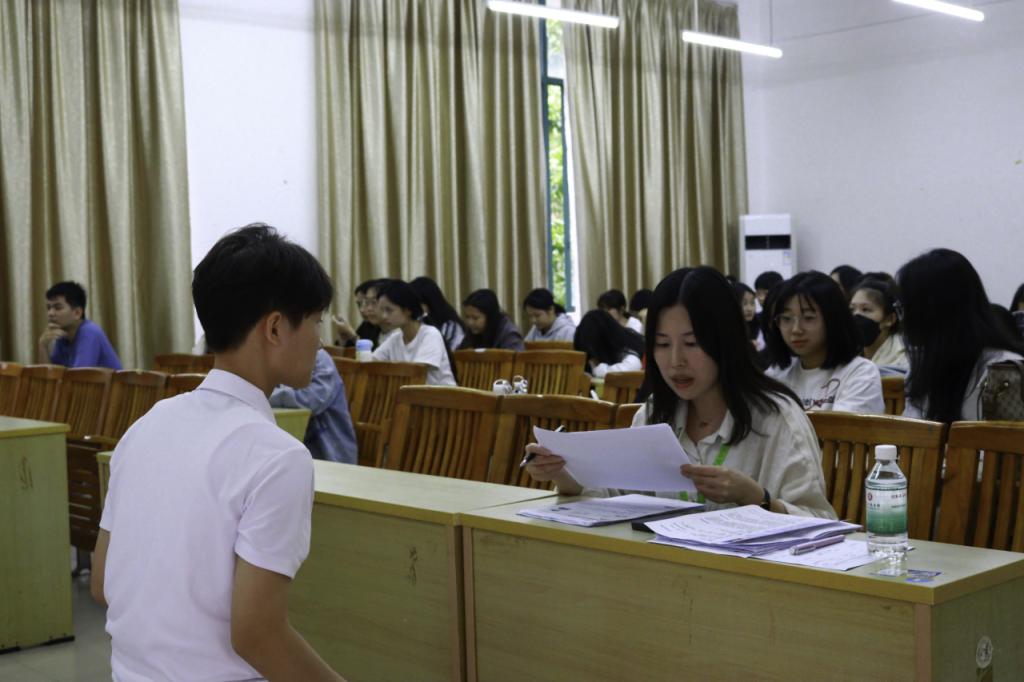随后的“订单班”面试环节中,学生会志愿者们成为了现场一道亮眼的风景线。他们提前到位、分工明确,一边耐心指引参与面试的同学有序前往面试室;一边坚守岗位维护现场秩序,及时疏导人流、解答疑问,确保面试环节高效顺畅地推进。学生们在志愿者的引导下踊跃参与,与企业面试官面对面交流。这一创新培养模式将课堂学习与企业实践紧密结合,通过定制化课程、岗位实训与企业导师指导,帮助学生提前适应行业环境,实现“毕业即上岗”的无缝衔接。一名参与面试的学生兴奋地说:“这样的机会非常难得,既能深入学习,又能提前锁定就业方向,让我们对未来更有信心。”