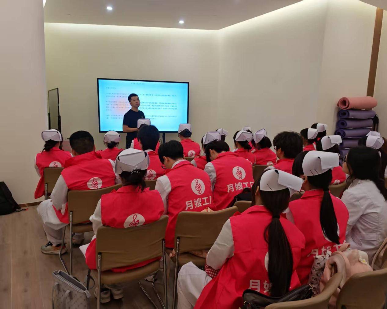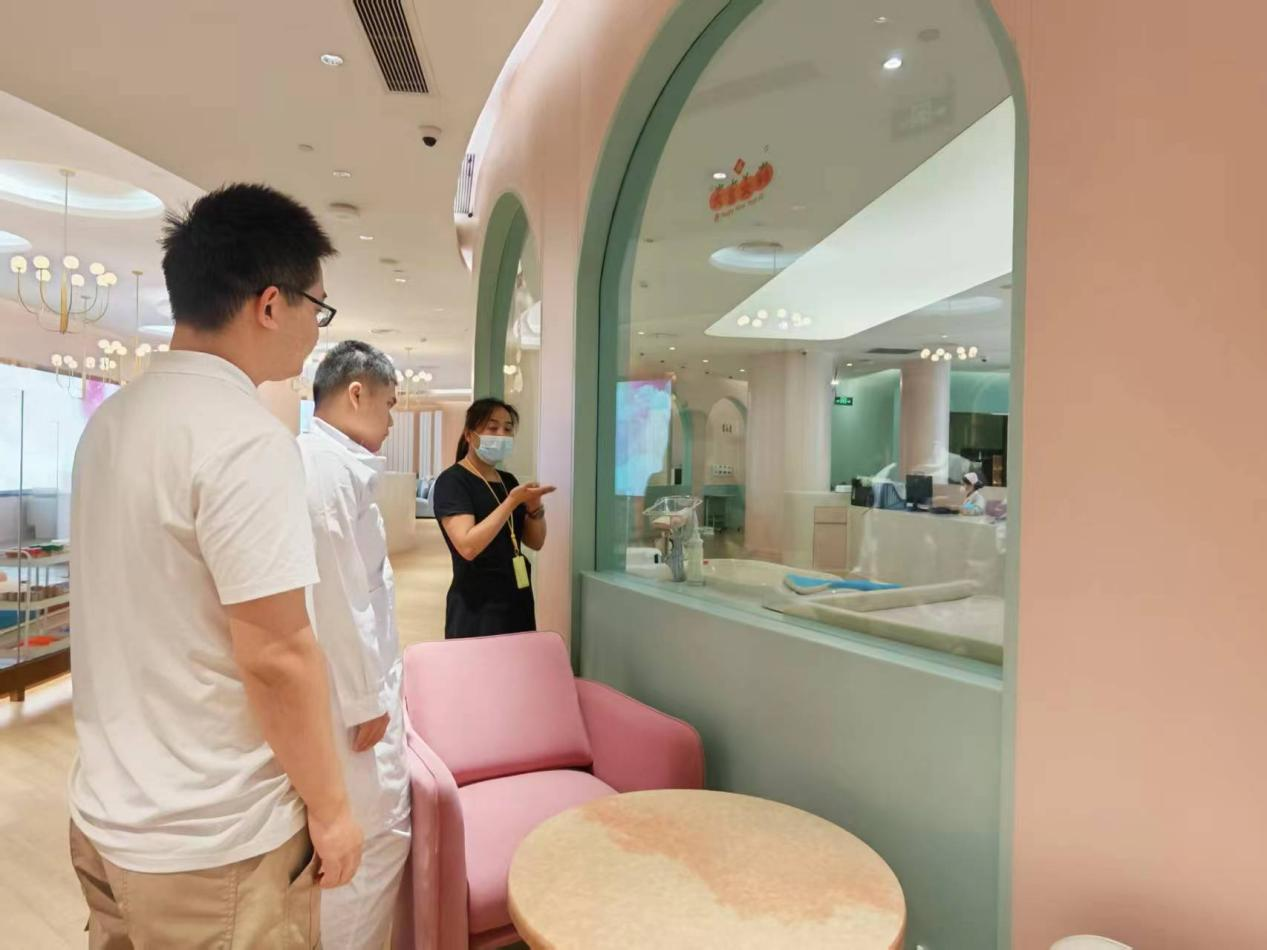 在月子会所相关负责人的热情接待下,同学们满怀好奇与求知欲,开启了一段富有意义的探索之旅。会所内环境优雅静谧,设施先进齐全,彻底刷新了大家对传统“坐月子”的刻板印象。在专业护理人员的引导下,同学们依次参观了产后康复室、新生儿护理区、专业产后瑜伽房以及科学配餐的营养膳食厨房。