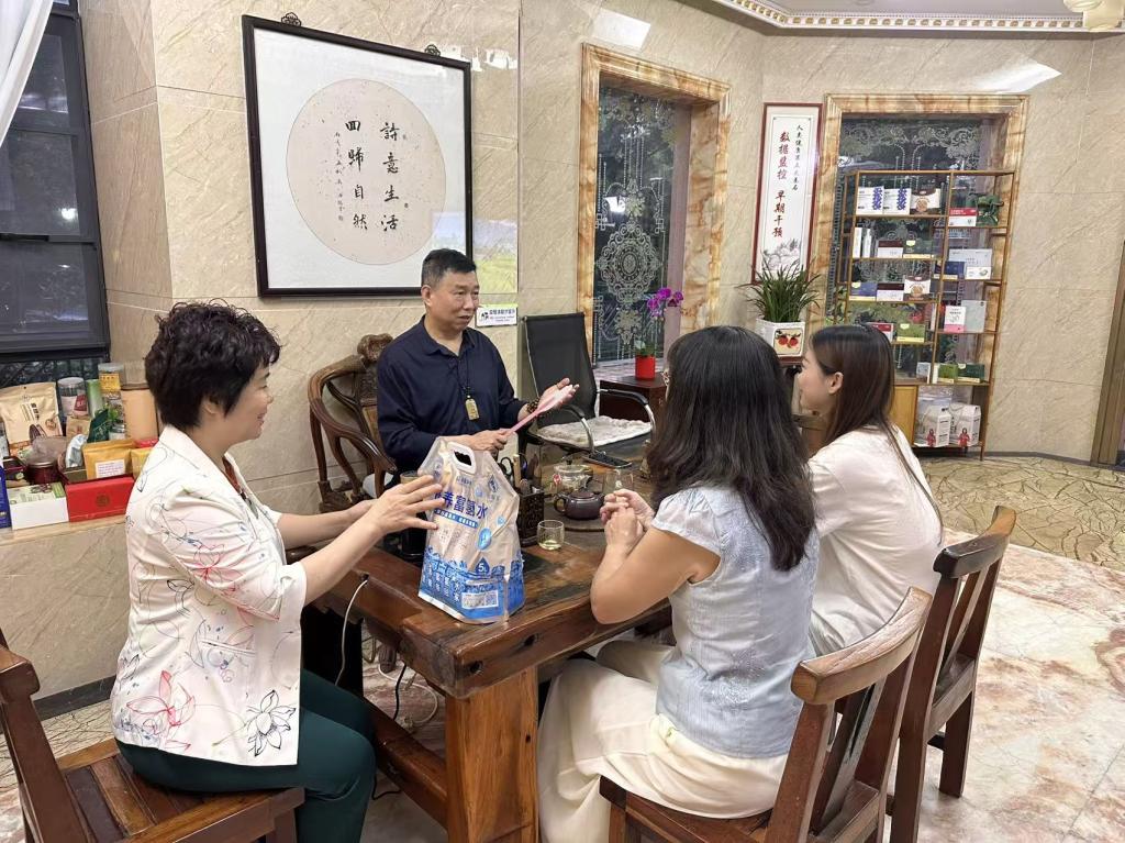 交流期间,洪文艳书记一行实地参观了公司“中医非药物慢性病调理中心”,深入了解企业在中医慢性病调理、健康监测、健康数据管理、药食同源医养服务等领域的业务布局与发展规划。企业负责人金鸿明围绕糖尿病、心脑血管疾病、高血压等慢性病预防与调理方案,介绍了企业“中医大道+西医数据”的核心服务理念,以及通过健康监测管理设备、健康数据管理平台和健康数据案例赋能社区百姓健康的实践成果。