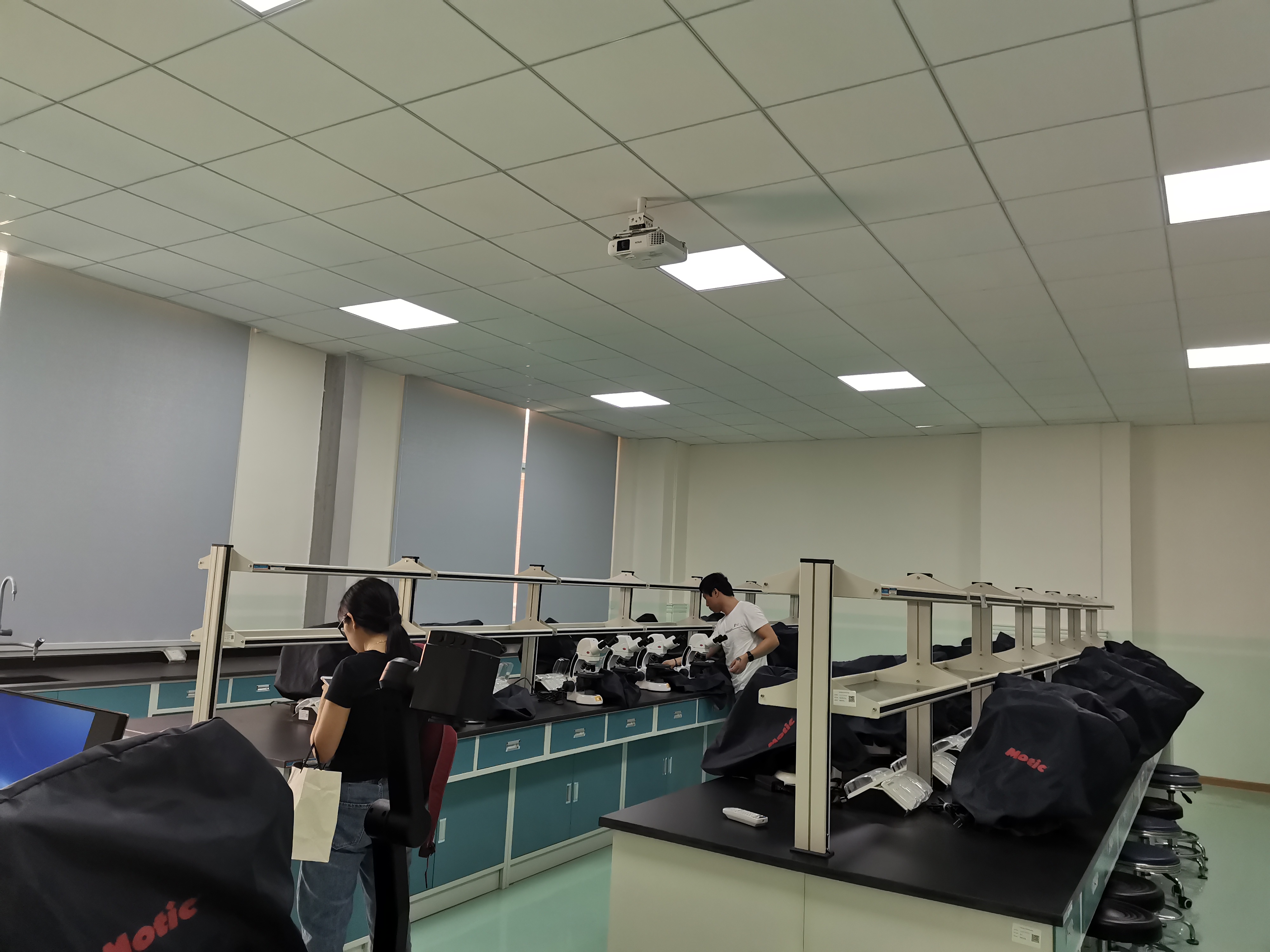 近日,我院实验员和广州汇腾科技经理在数码互动教室进行定期电子显微镜进行维护,做好开学准备。