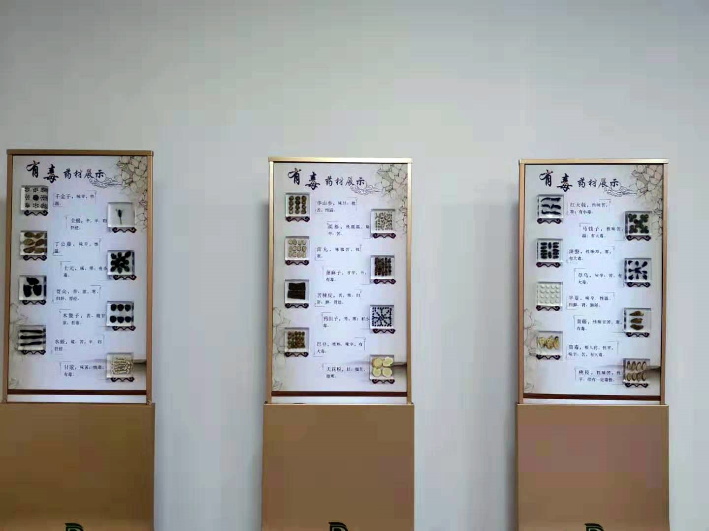 腊叶标本区、浸制标本区、海洋药材区、十八反十九畏药材区、生药标本区、饮片标本区、鉴别标本区、岭南药材区、贵重药材区。