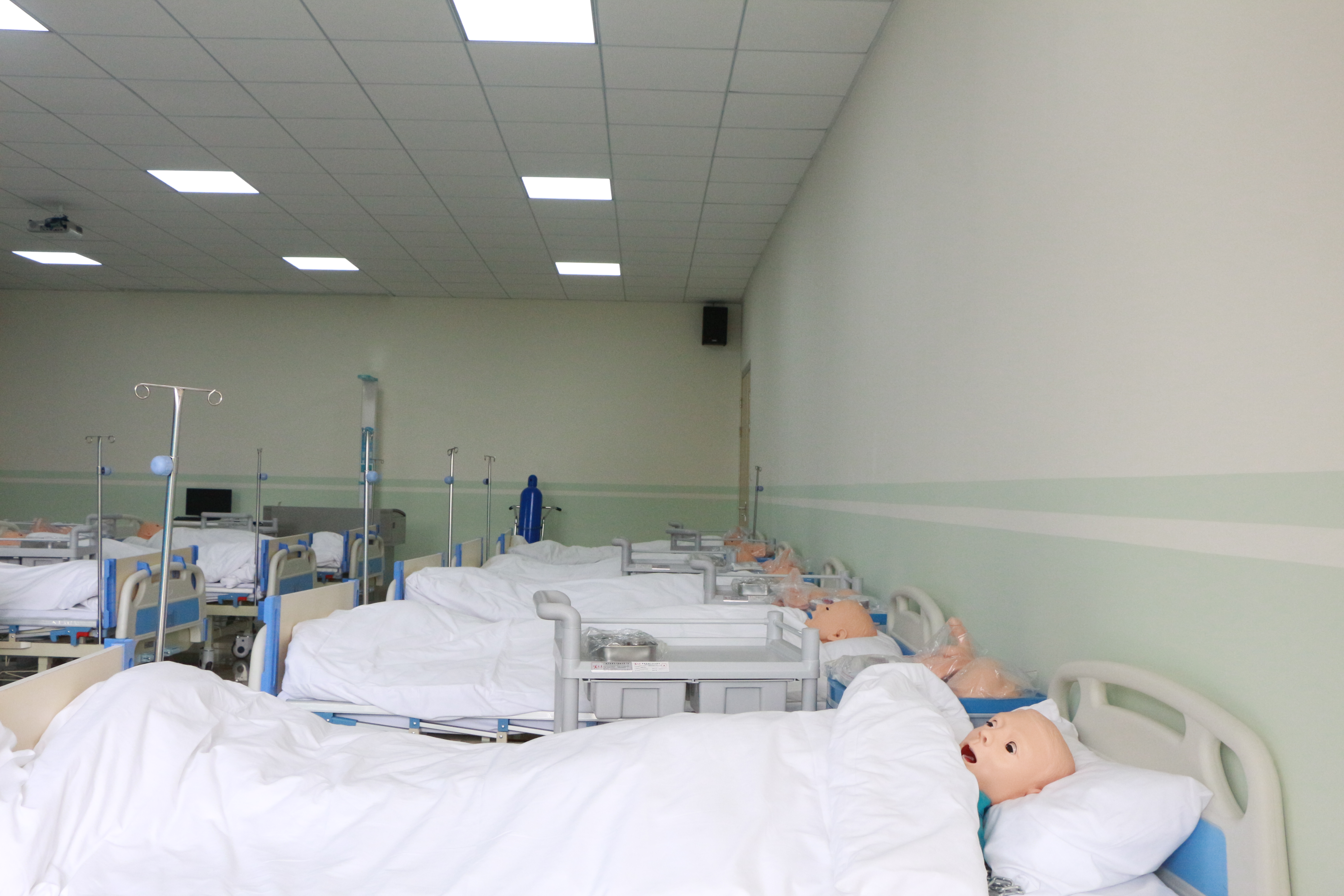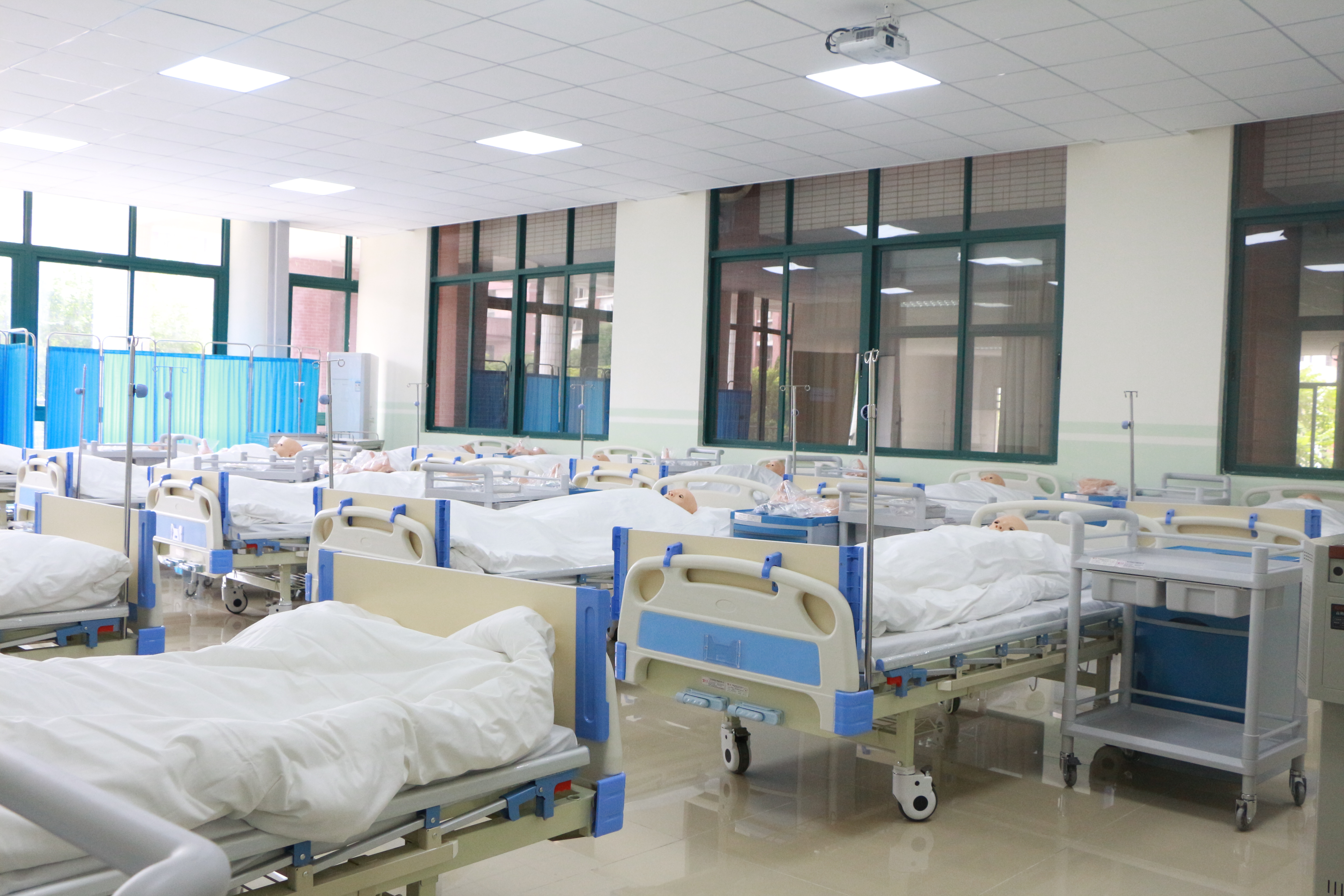 护理基础实训室位于厚德楼西庭二楼,承担护理学专业的基础课程。室内主要教学设备与教学仪器有心肺复苏训练考核模拟人、护理模拟人、男性导尿操作模型、女性导尿操作模型、灌肠操作模型、急救训练包、医用病床、医用治疗车、氧气筒及氧气筒推车、药品柜、不锈钢方盘托架、医用屏风、床头柜等,可满足基本教学使用。