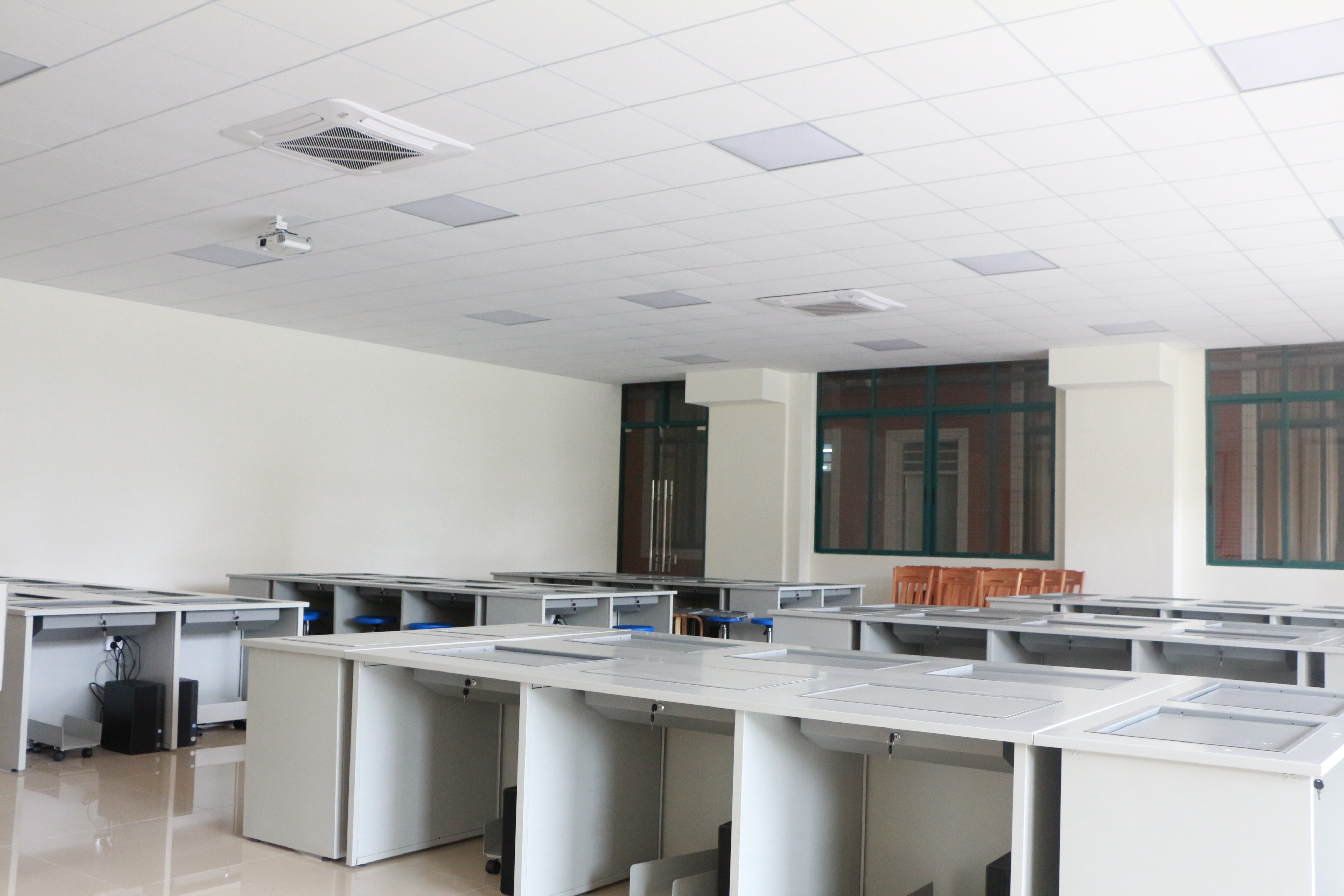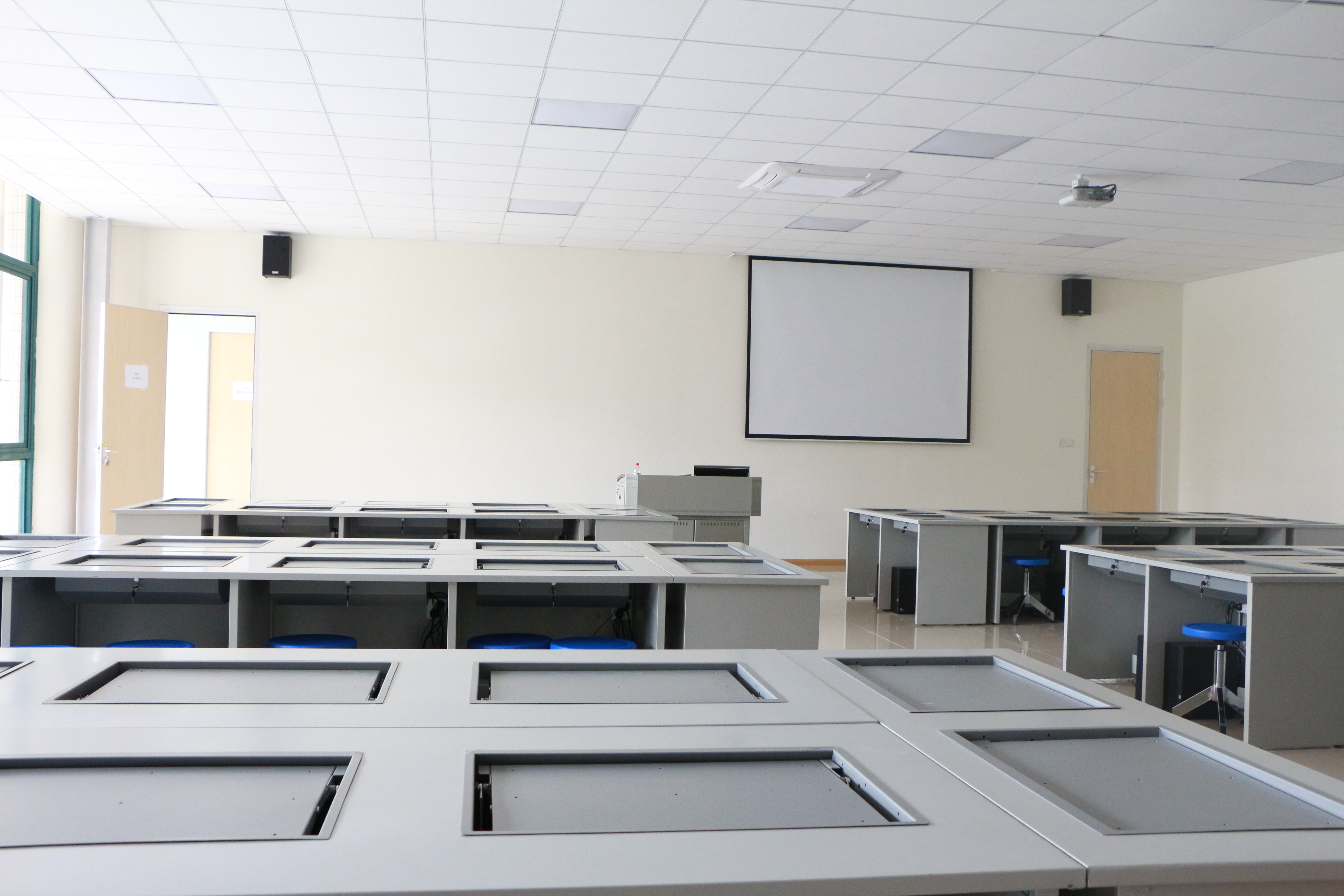 ERP实训室位于厚德楼西庭二楼,面积为140㎡,工位60人。主要承担药品经营与管理等专业等的课程。室内存放有多媒体播音设备、办公桌、学生端计算机、教师端计算机、交换机等设备,能够满足基本教学需求。