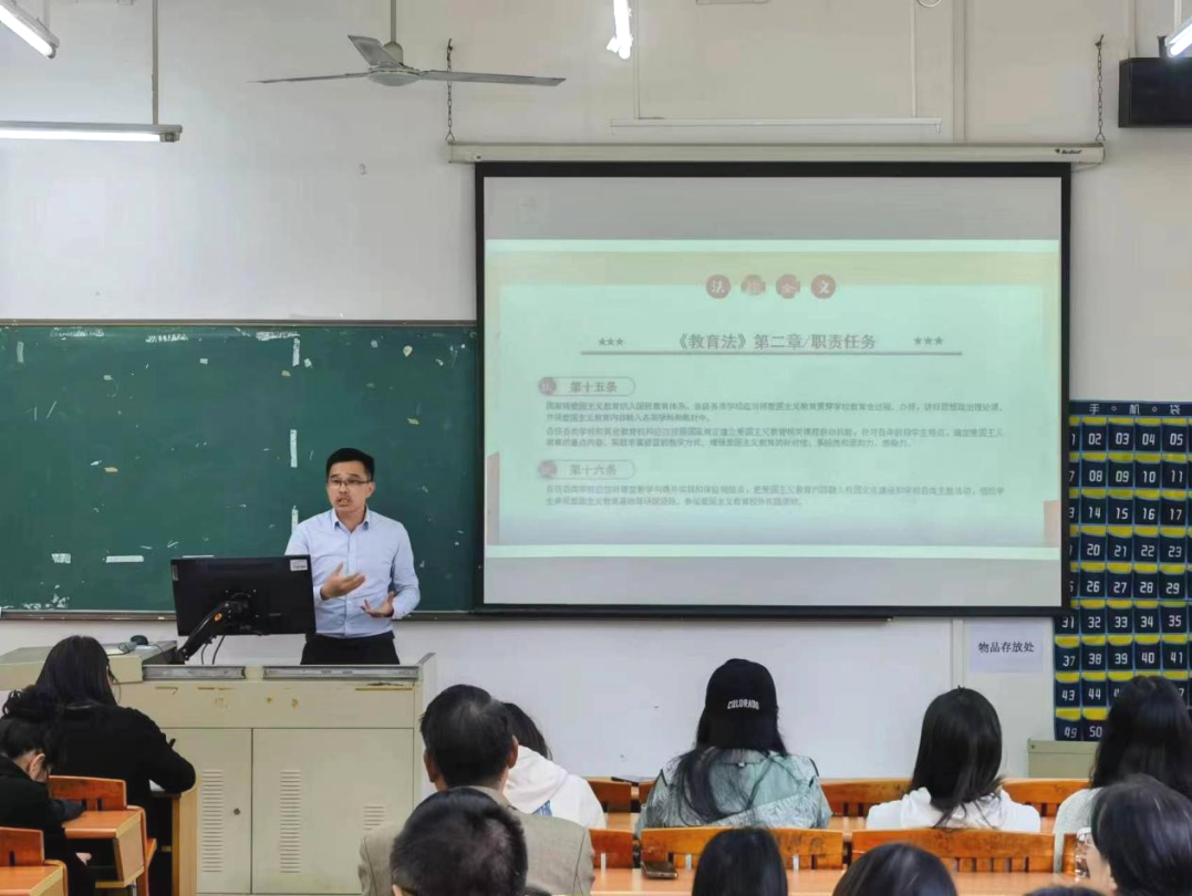 最后,党总支副书记黄泽栋组织学习《中华人民共和国爱国主义教育法》及“教育家精神”,并结合《广州华商职业学院教职工职业行为管理办法(试行)》,指出全体教职工要对照有关法律法规、校纪校规,认真履行岗位职责,努力成为一名有理想信念、有道德情操、有扎实学识、有仁爱之心的“四有”好老师。