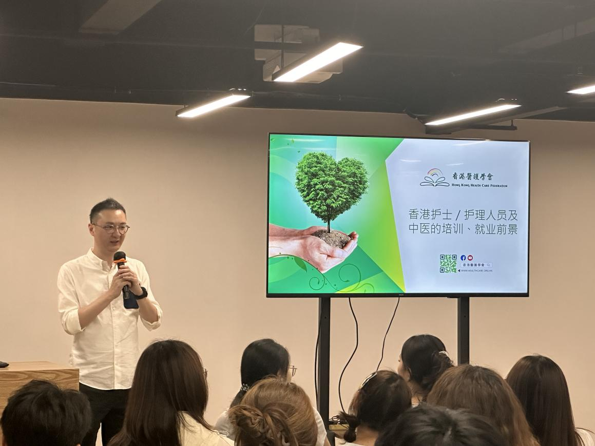 研学团清晨出发,经深圳抵港后,首站参访香港知名医护服务机构——百本集团。师生们实地考察了集专业培训(涵盖护理及养老护理资格认证)、医药流通、中西医门诊及牙科服务于一体的运营体系。集团专家带来的“香港养老护理行业发展现状与前景”主题讲座引发了深度思考。师生们就内地护理专业毕业生赴港就业的资质要求、具体路径及其可行性,与港方专家展开了务实探讨。