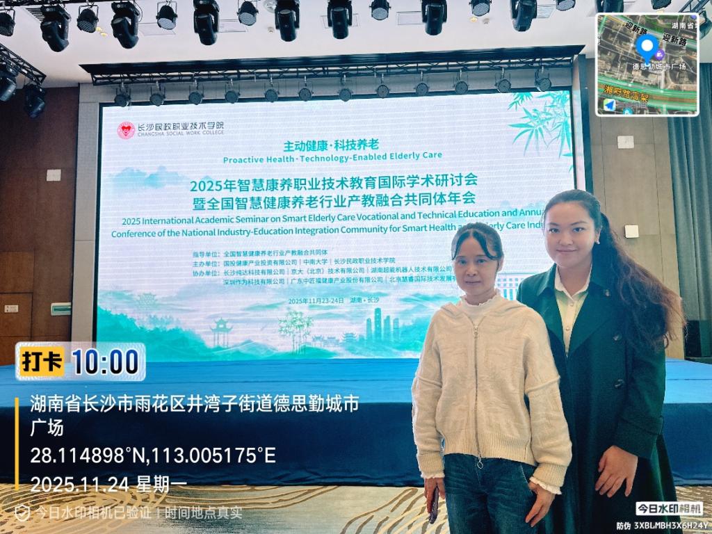 近日,2025年智慧康养职业技术教育国际学术研讨会暨全国智慧健康养老行业产教融合共同体年会在长沙顺利召开。我院屠美教授与唐莉珊老师应邀参会,与来自国内外的专家学者及行业代表共同探讨康养产业人才培养的新路径与方法。