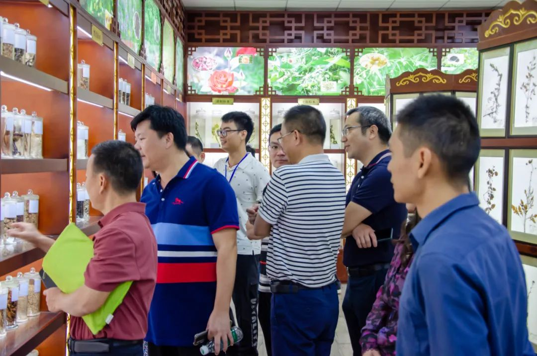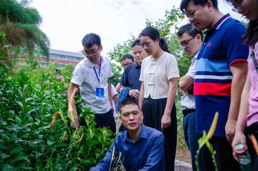 随后,杨滔老师带领领导与嘉宾步行前往药圃,杨滔老师讲解了沿途的药用植物和中药,对药圃里种植的各类药材也进行了详细讲解。