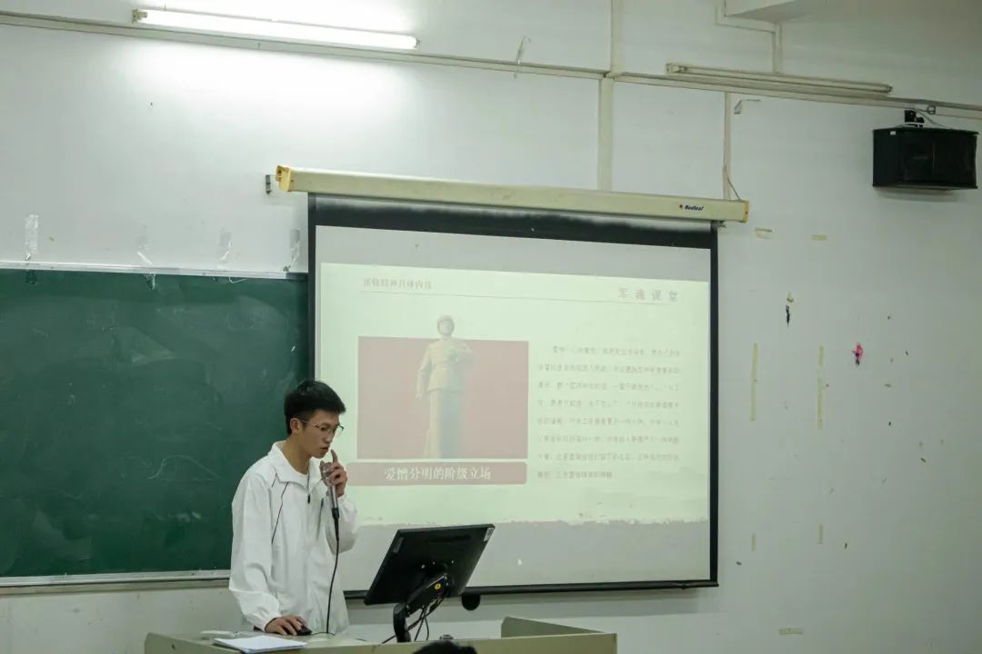 健康医学院国防教育宣讲团的吴鸿钦同学讲解雷锋精神以及雷锋精神的时代内涵