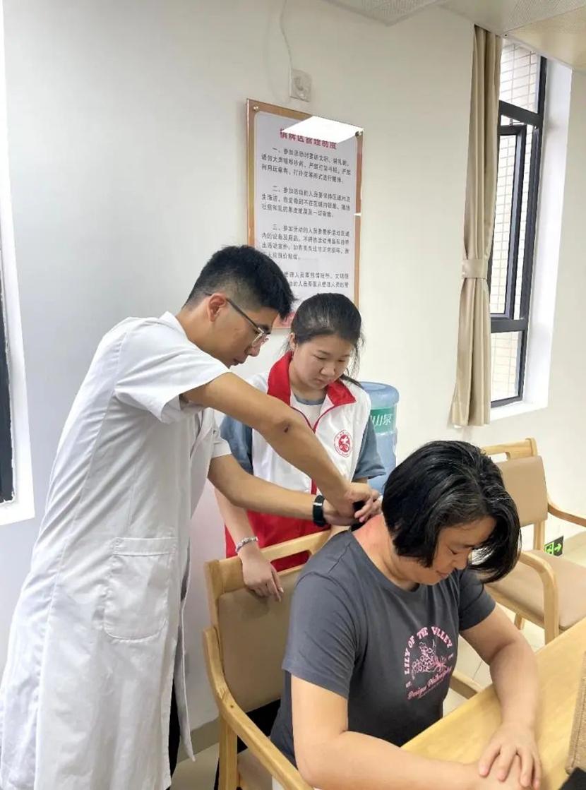 为长者的健康保驾护行,普及健康理念知识。2023年11月11日上午,我院医心健康服务队队员跟随软康班冯一 柯老师联合荔湖街综合养老服务中心(颐康社区)于太平村颐康服务站开展关爱长者义诊活动。本次义诊系为颈肩腰腿痛患者提供推拿按摩、刮痧等康复理疗项目。