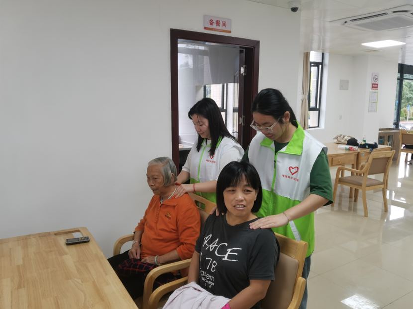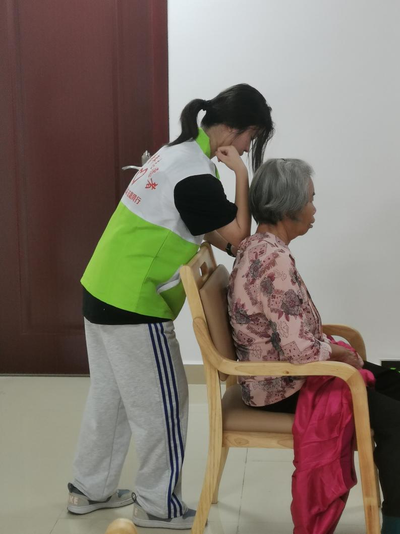 在冯一柯老师的指导下,根据长者自述的问题和需求,志愿者们有针对性地为长者进行推拿、刮痧等。在推拿和刮痧的过程中志愿者还运用所学知识,为长者们解答刮痧,推拿的作用和日常需要注意的事项,让长者们近距离感受到中医康养的文化魅力。同时通过询问长者的身体情况,进行调理。在志愿者的服务过程中,长者们也露出了认可的微笑。
