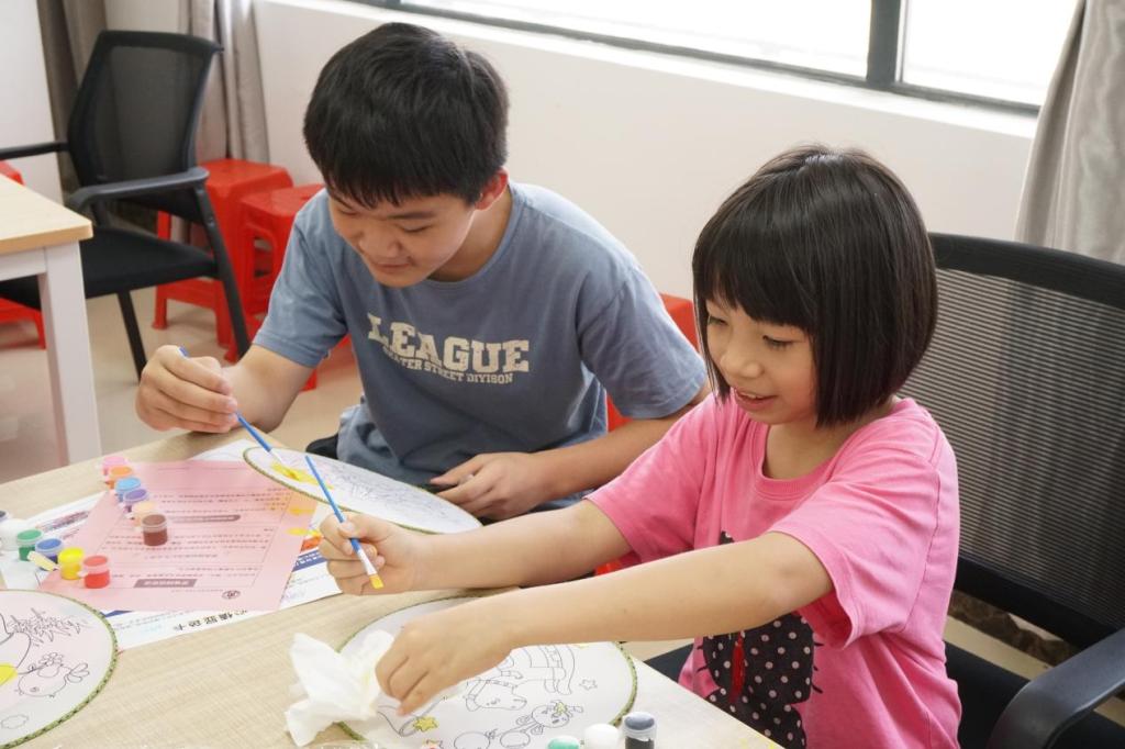 在活动的特别环节中,我们安排了一场别开生面的亲子填涂手工扇互动活动。在团队成员们耐心的指导下,家长们与孩子们携手并肩,共同创作描绘出一把把五彩斑斓的手工扇。