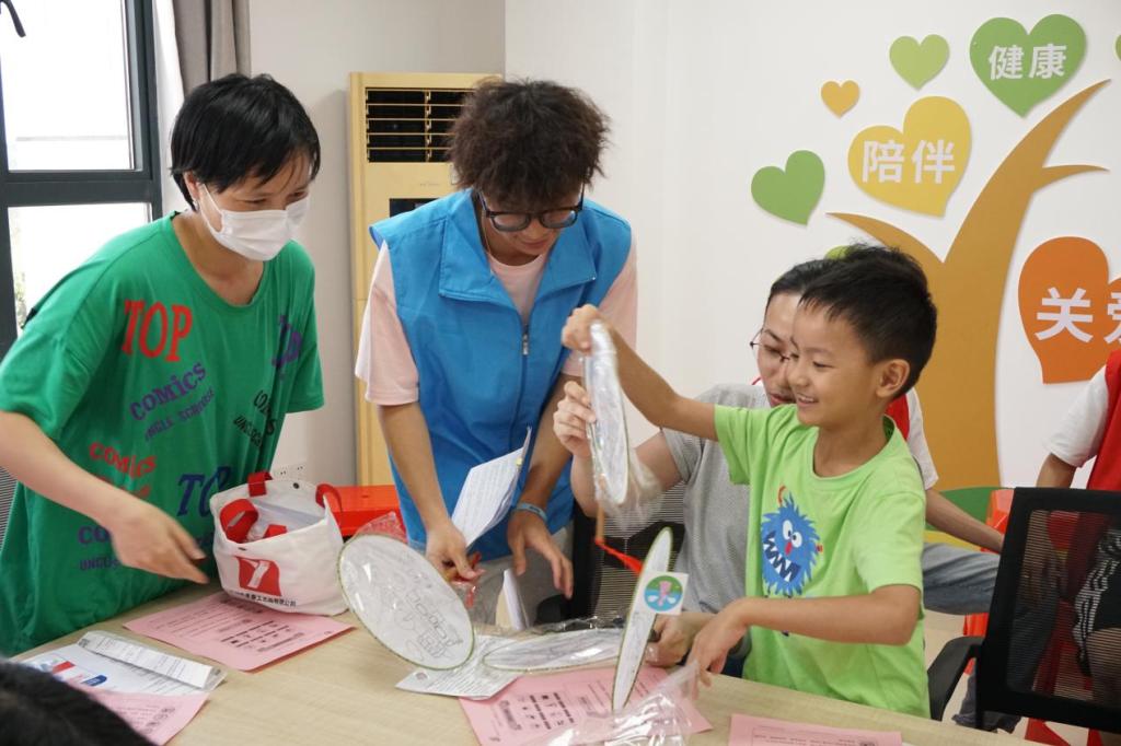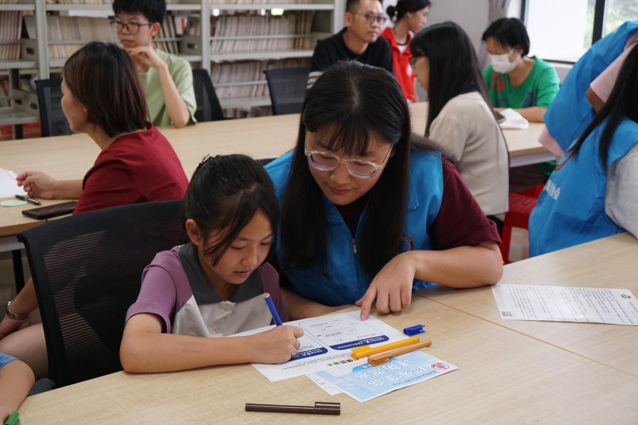 活动中,“医心为民”社会实践队队员协助开展“松鼠大树”互动游戏及心情显色卡制作环节。在游戏中,队员们积极引导亲子组合紧密合作,在欢笑中加深了家庭成员间的情感纽带。通过心情显色卡这一创意形式,家长与孩子们共同用色彩表达内心的情感与状态,这种直观且富有创意的沟通方式,让彼此更加清晰地理解对方的内心世界,有效搭建了亲子沟通的桥梁。