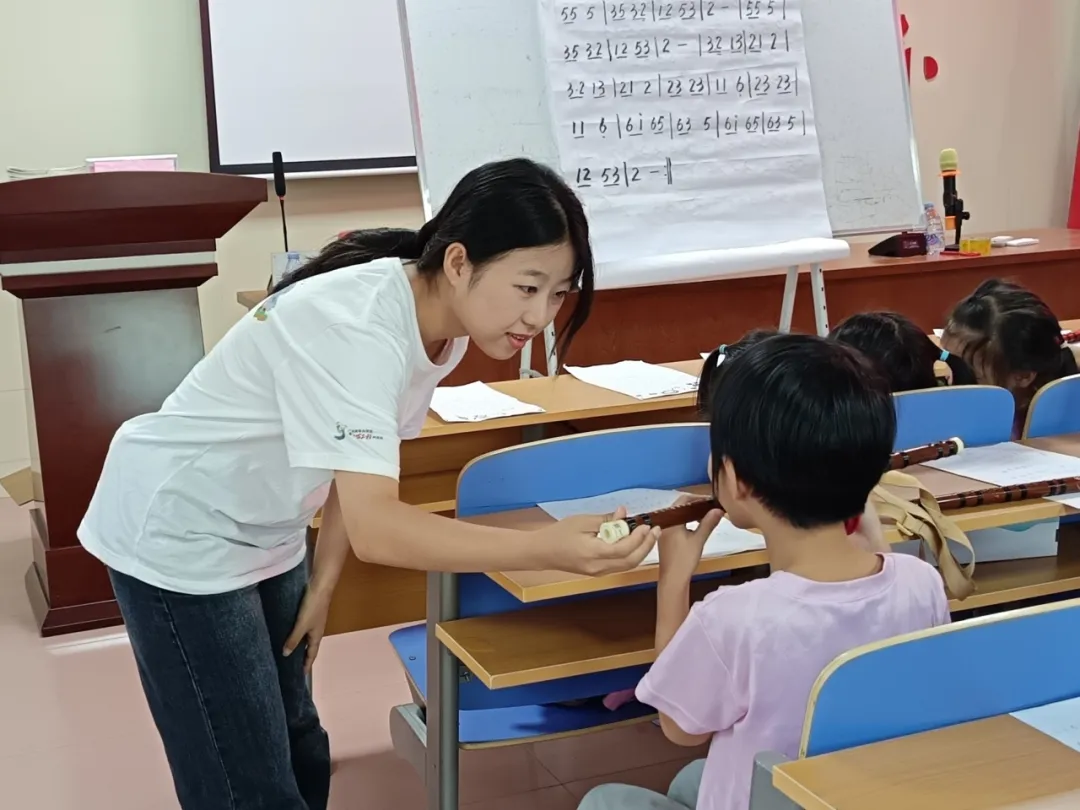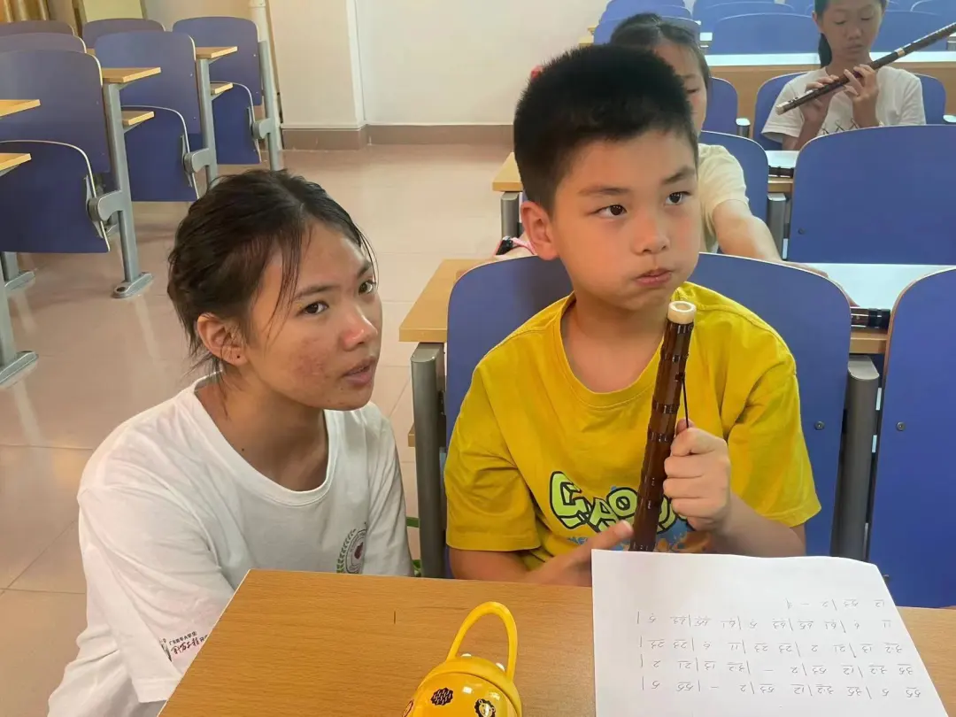 在三联村,第六期竹笛公益关爱营课程如期进行,队员们陪伴青少年从指法生疏到简谱悠扬,见证了他们耐心与毅力的成长,音乐成为心灵的桥梁,铸就坚韧心理健康堡垒。而在荔湖街文化站中国舞公益关爱营课程也在进行中,队员们化身为细心守护者,引导学员们进行热身,课间磁力片与数字迷盘互动,为课堂注入活力,让青少年在欢笑中释放压力,锻炼记忆与专注,学会自我调适,为心理健康成长添上亮丽色彩。