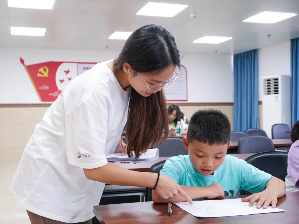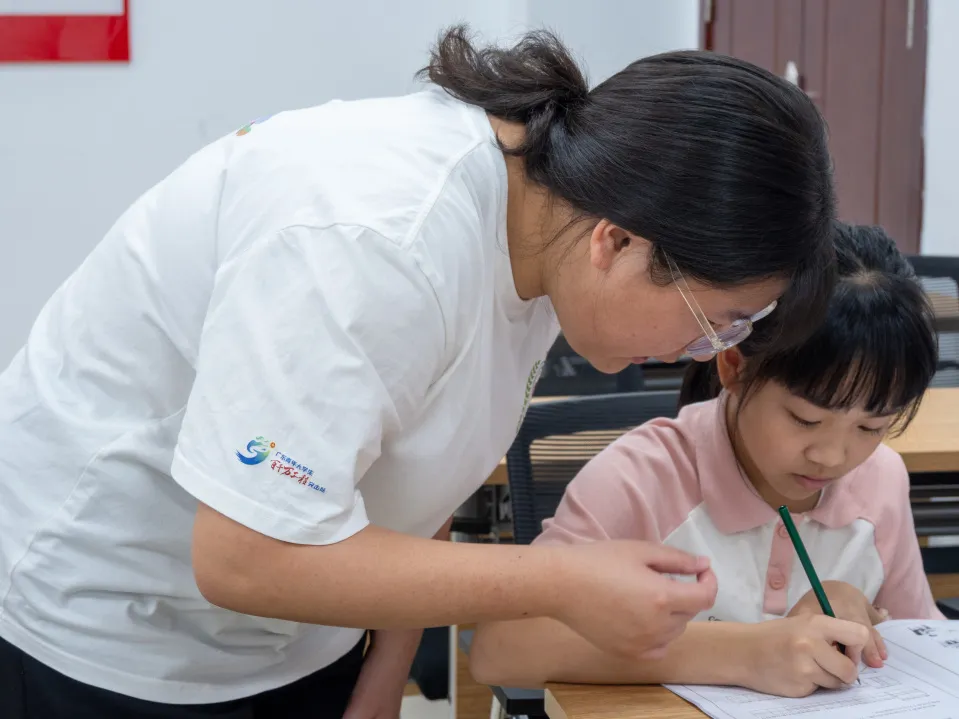 广州华商职业学院“医心为民”社会实践队还分别进入五一村、太平村及明星村,开展硬笔书法公益关爱营课程。活动中,队员们耐心引导青少年们调整坐姿、纠正握笔姿势,细心观察每位学员的情绪变化。通过书法为媒介,引领青少年沉浸于传统文化的海洋,释放压力,培养耐心与专注,为他们的心理健康播撒阳光。