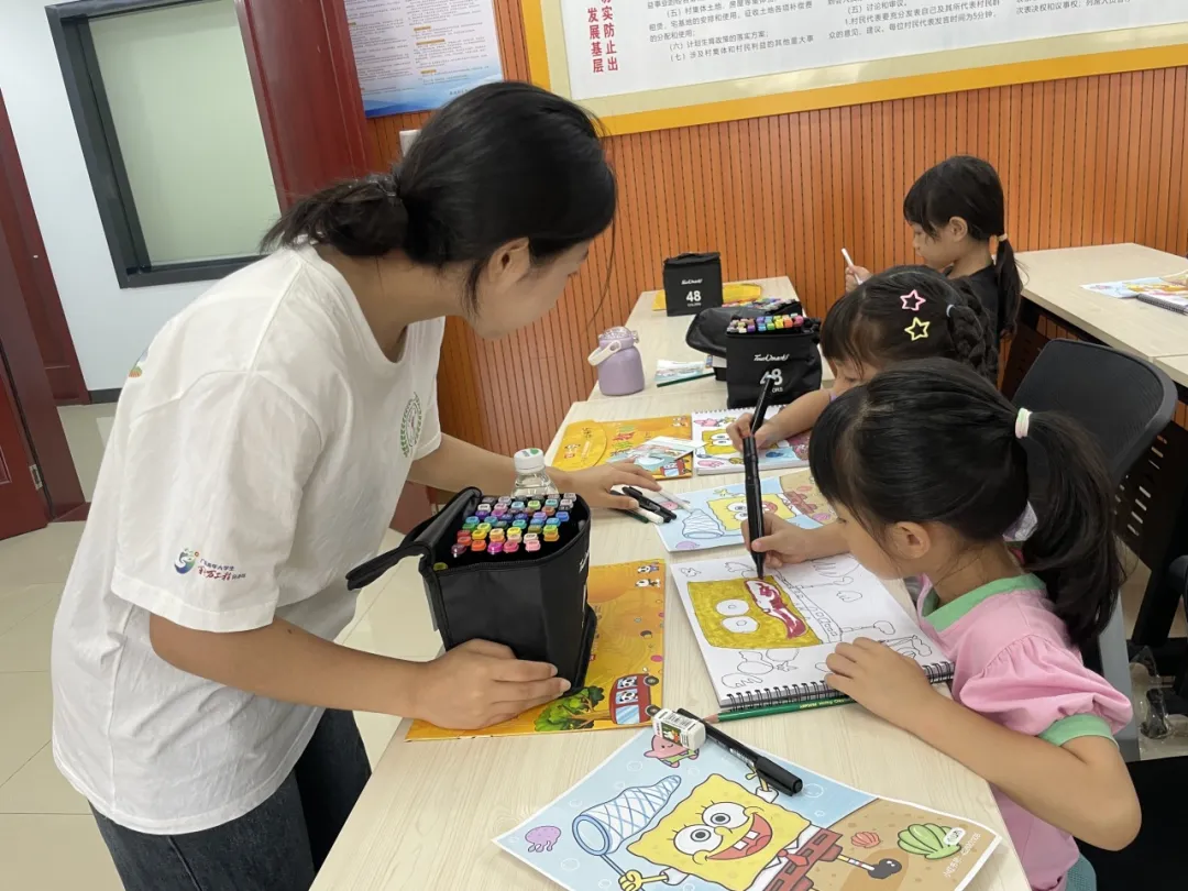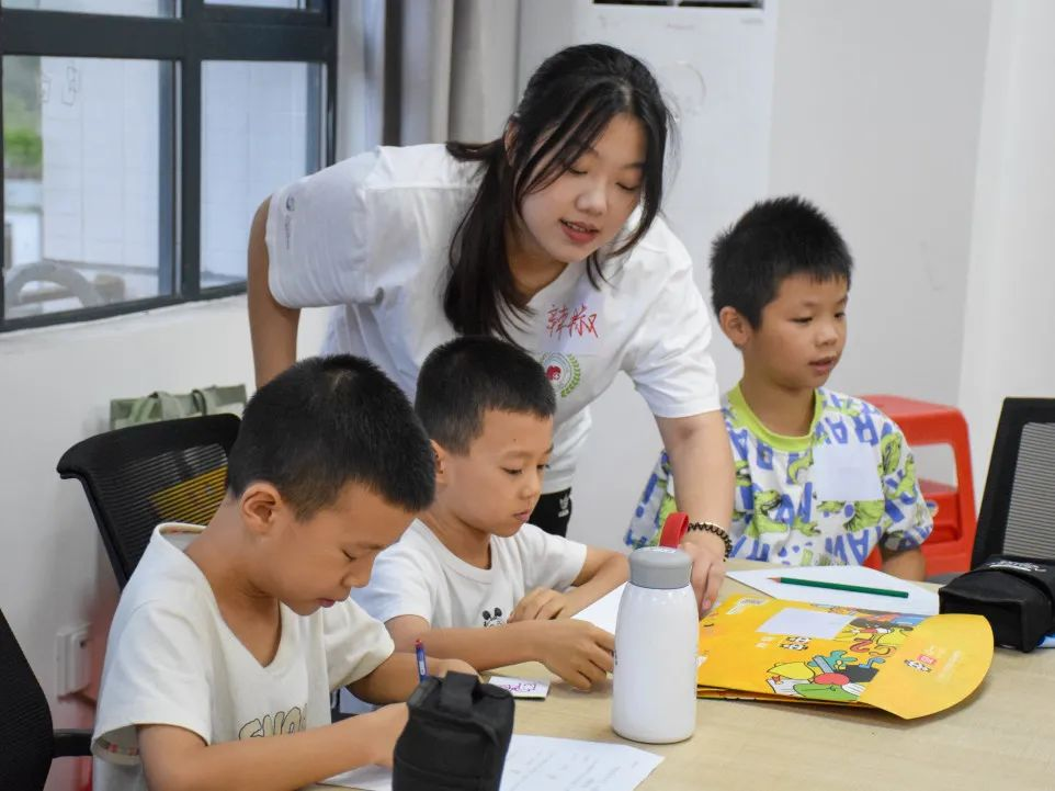在光明村,队员们与荔湖社工站携手启动第一期动漫绘画公益关爱营课程,构建了一个洋溢着色彩与梦幻的心理健康天地。与此同时,在西瓜岭村,第一期小主持人公益关爱营也如火如荼地进行着。通过一系列精心设计的口部操热身与翘舌绕口令挑战,学员们在欢声笑语中不仅锻炼了语言能力,更在每一次尝试与成功中收获了自信与坚韧,学会了自我调适与积极面对挑战,为学员们的暑期生活增添了积极正面的心理疗愈色彩。