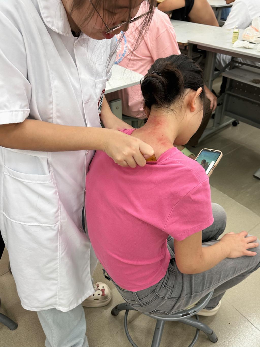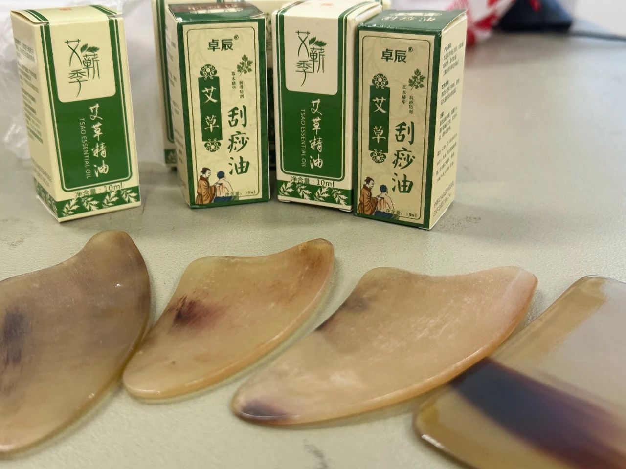 根据每个人的需求和体质状况,给出了刮痧部位和力度的建议,为同学们进行个性化的刮痧体验。许多同学表示,虽然过程中有些许疼痛,他们便能享受到极大的轻松和愉悦。