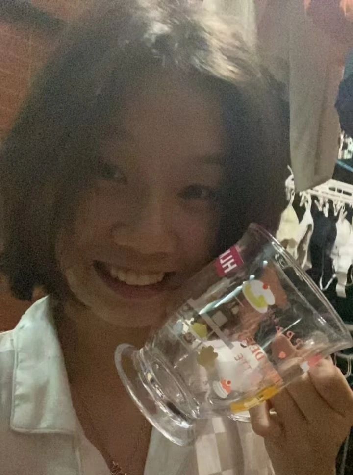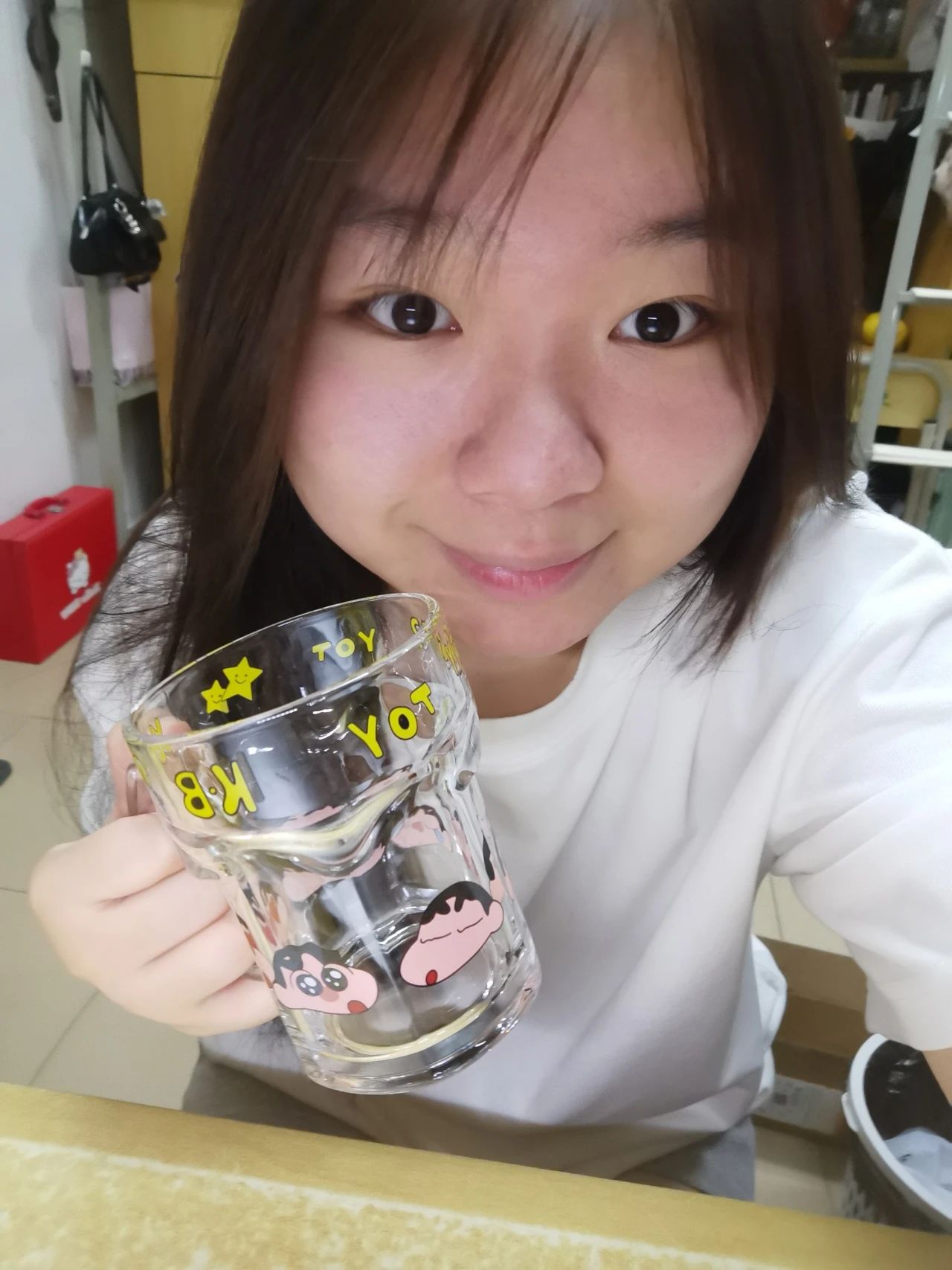 获得UNO游戏三等奖的冯允仪同学获得水杯一个