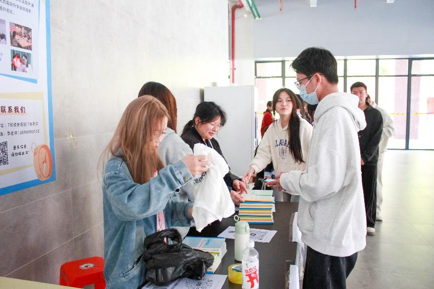 活动现场气氛热烈,同学们积极参与,将闲置衣物清洗干净、叠放整齐后送到捐赠点。志愿者们也热情地投入工作,有序接收每一份捐赠,展现出青年学子对公益事业的认真与热忱。