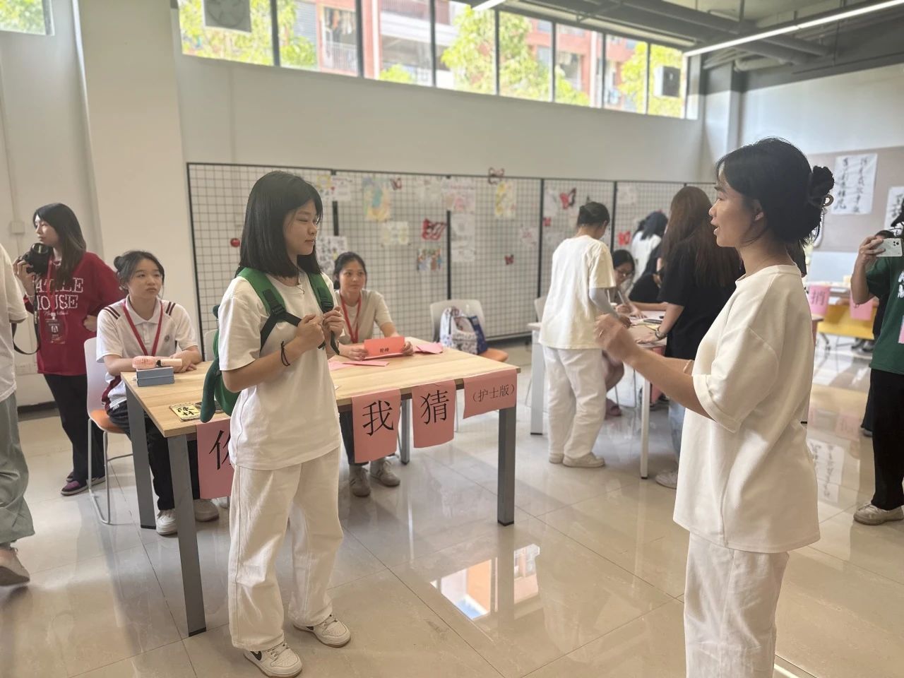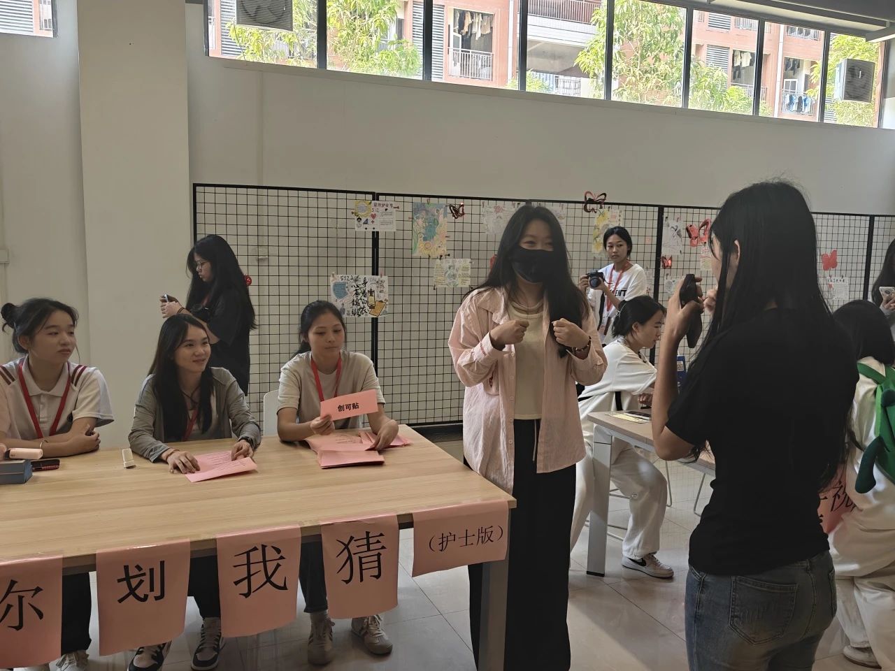 活动现场气氛热烈非凡。平日里忙碌在学习上的同学们卸下了学业压力,化身为活力满满的游戏参与者。活动设置了丰富多样的题目,涵盖医学术语、护理工具、生活日常等多个领域。活动中,选手们两两一组,一人通过生动形象的肢体动作和巧妙的语言提示,努力向搭档传递题目信息;另一人则全神贯注,凭借对队友的了解和敏锐的洞察力,迅速猜出答案。