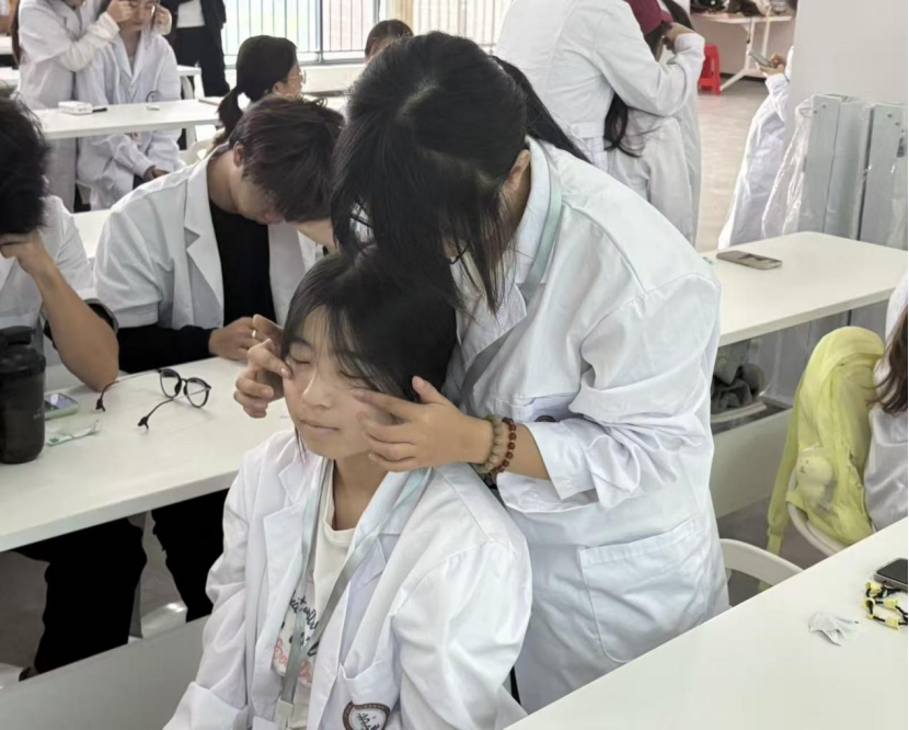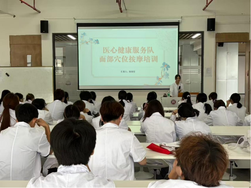 此次培训通过上台演示、分组练习的方式,让队员们真正感受到了面部推拿理论知识和实操技巧。未来,医心健康服务队将把这项技能融入公益服务当中,把健康温度传递给更多人。