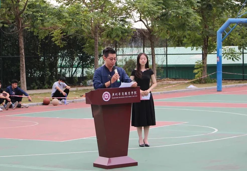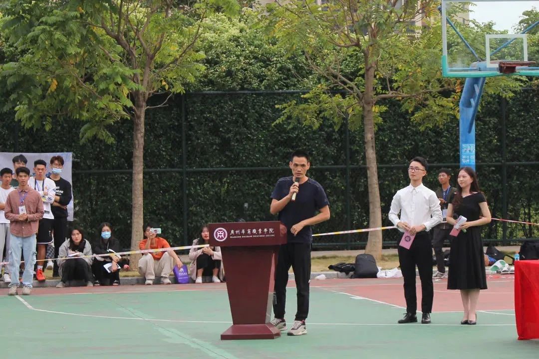 2020年11月13日下午16点,各院系的参赛队伍在创新楼门前三号场集合,开幕式正式拉开序幕。莅临现场的有:谢锦权老师、岑道令老师、钟伟成老师、关吟老师、黄向荣老师、胡珈源老师。谢锦权老师表示:新学期新气象,校新生杯的开启,代表着华职的新气象。篮球赛既促进了我校的运动风气,同时也活跃了每一个院系的篮球氛围。他强调同学们在比赛过程中要秉承着“友谊第一、比赛第二”的精神,鼓励新生们要加强体育锻炼。同时,他预祝本次校新生杯取得圆满成功。