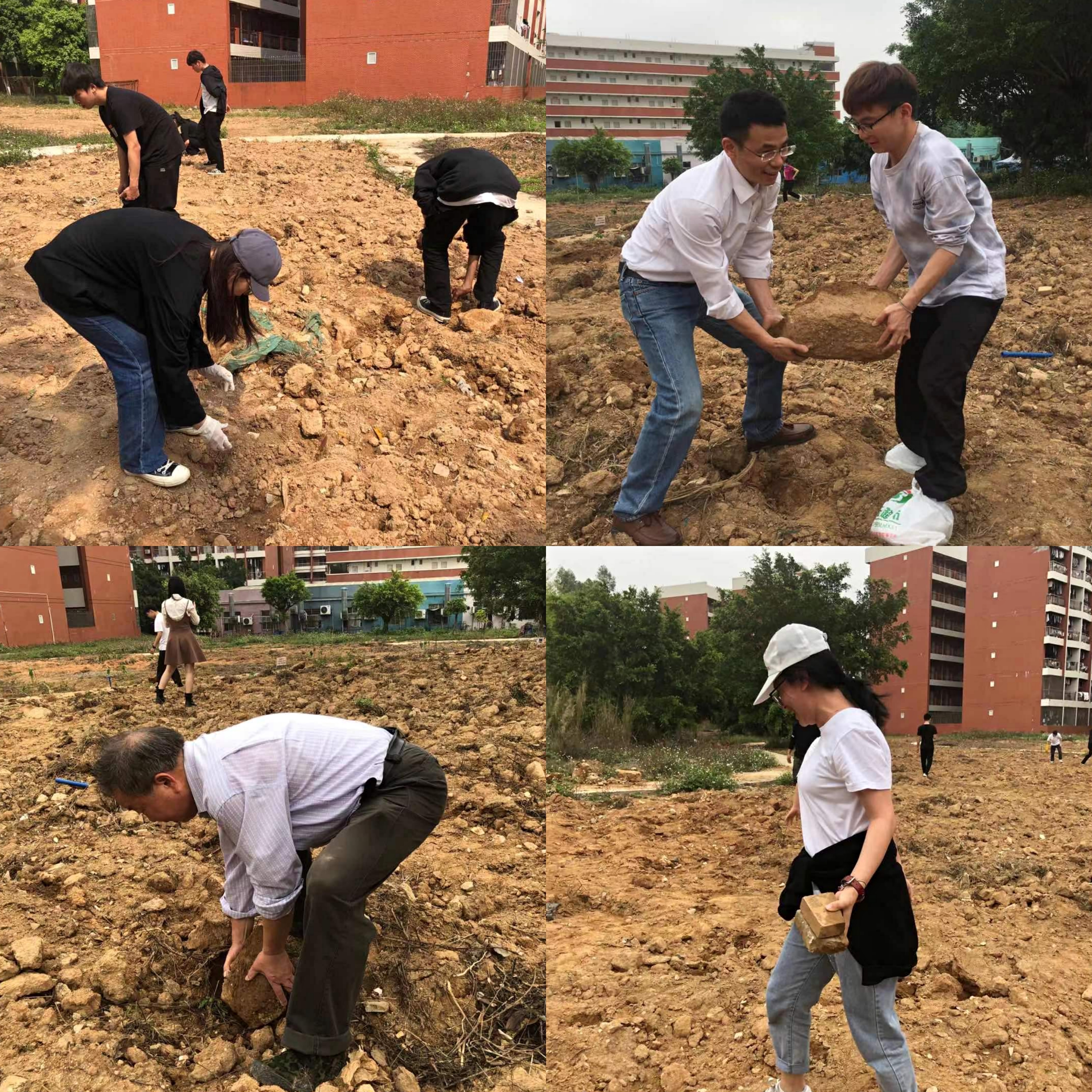 在本次活动中我们可爱的老师们亲力亲为,为建设美丽校园贡献出属于自己的那份汗水。志愿者辛勤的汗水,也让这片土地更加的“肥沃”。