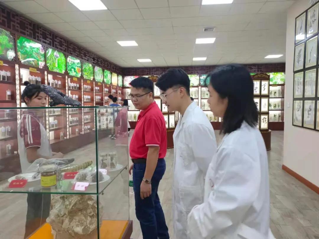在同学们讨论的期间,学校的一些领导也前来参观中药标本馆。在浓厚的学习氛围下,在场的同学们纷纷向领导们讲出自己对某些中药的看法,如:药食同源中山药是日常的食物也是药物,可达到养生的目的。