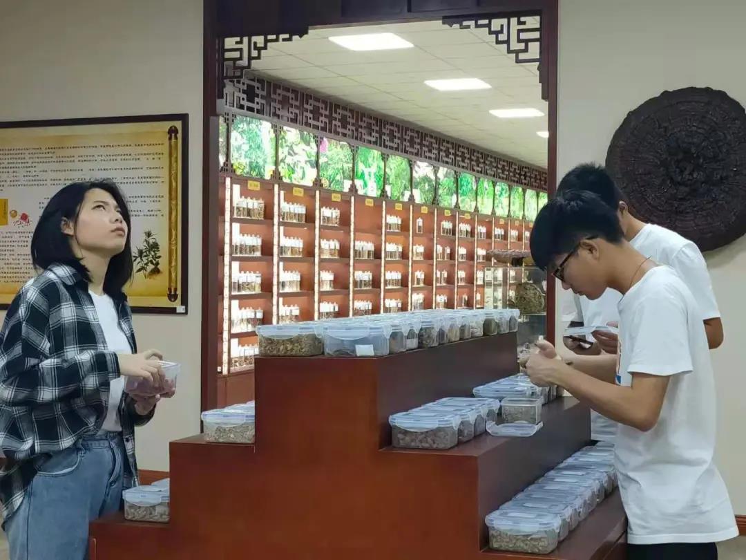 参观者们同讲解员一同辨别中药材,一同探讨中药材药效,闻香识药技巧等,遇到辨认度较难的药材,大家便会一起讨论,查阅标本馆内存书籍。让参观者收获知识的同时也收获快乐,这也是标本馆存在的意义之一。