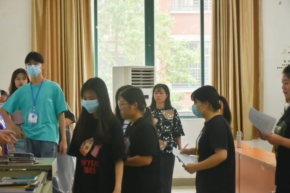 随着时间的流逝,同学们陆陆续续地完成了作答,有序排队交卷,并领回个人物品,扫码加分安静离场。