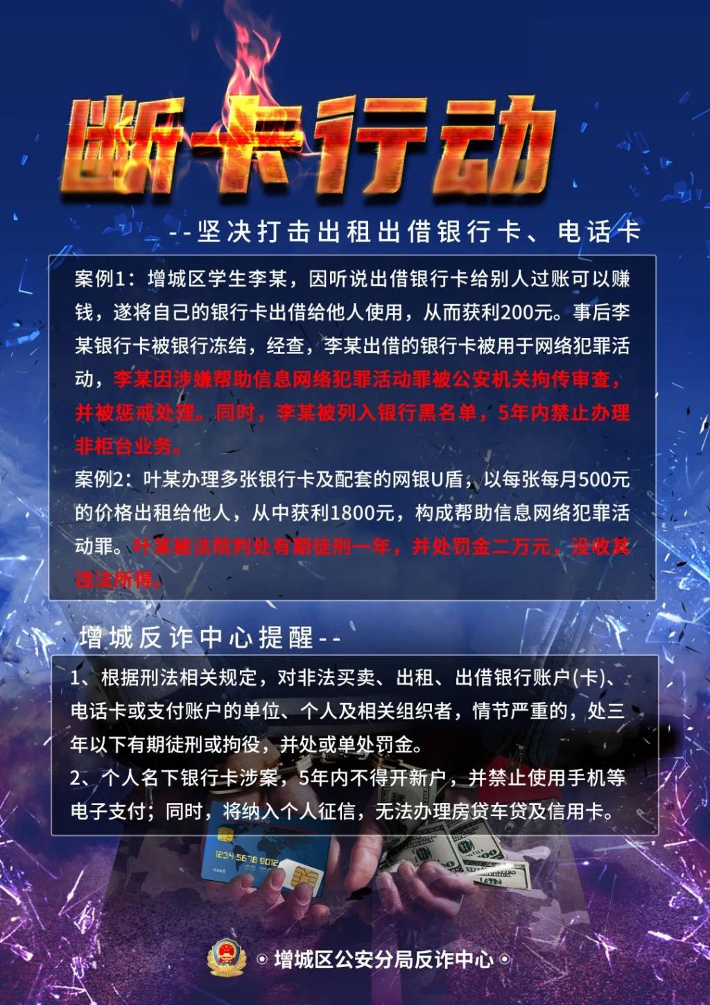 2、个人名下银行卡涉案,5年内不得开新户,并禁止使用手机等电子支付;同时,将纳入个人征信,无法办理房贷车贷及信用卡。