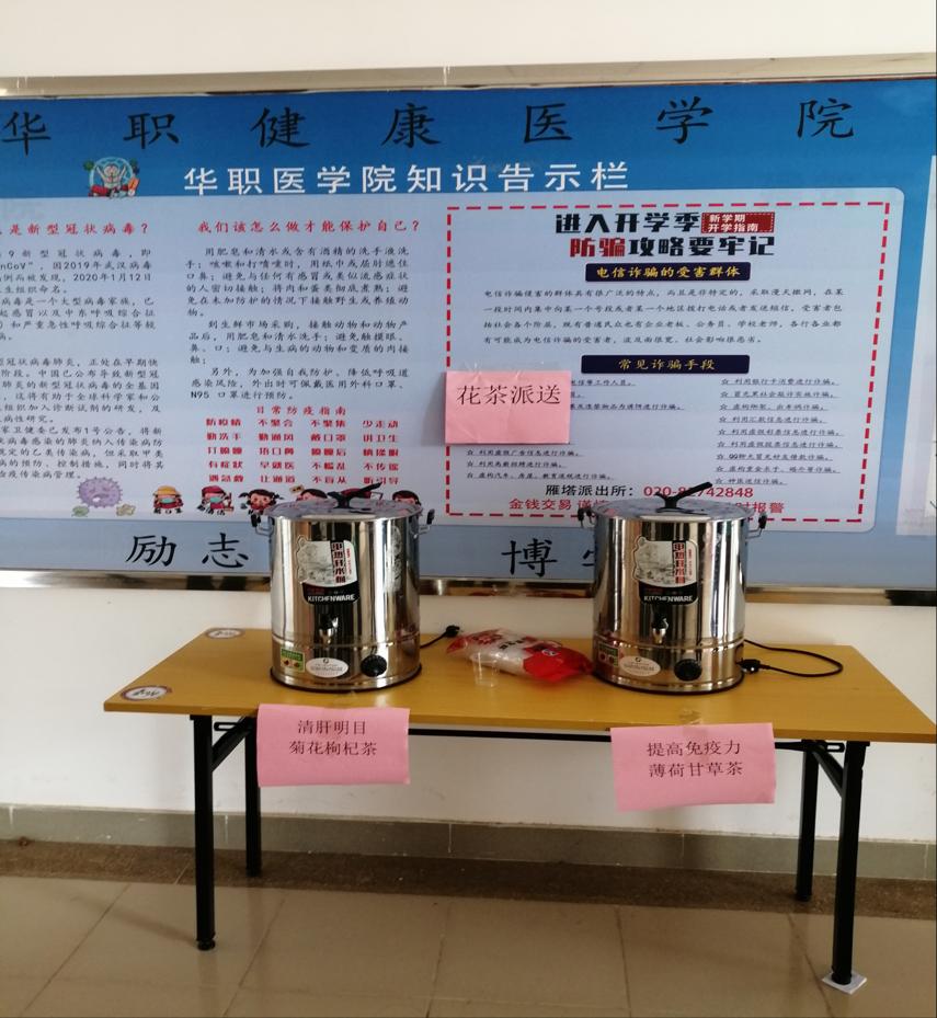 为营造“健康和谐”的校园氛围,深入贯彻我为同学做件事,我为同学做实事,2023年3月16日,健康医学院在博学楼B507门外为同学们免费派送养生花茶。