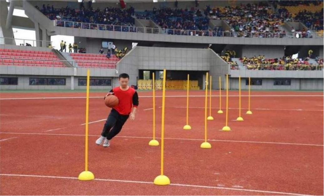 设置固定标志物,1 分钟内运球绕杆,各单位限定报名人数为 10 人,每人一次机会,达标得 1 分。