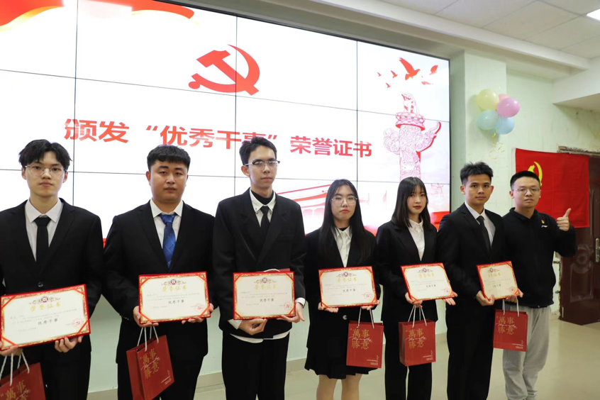 林健强老师为李泽、吴城焕、陈冠霖、傅灿杰、黄宇、彭丽芬颁发荣誉证书。“医心向党”学生党务办公室