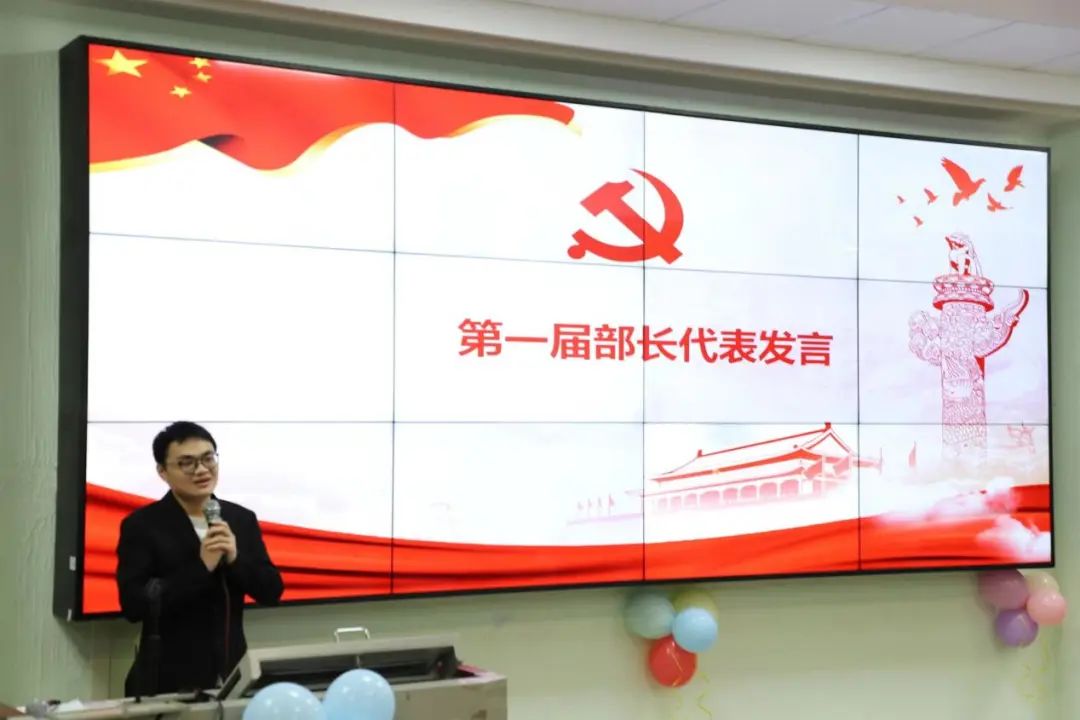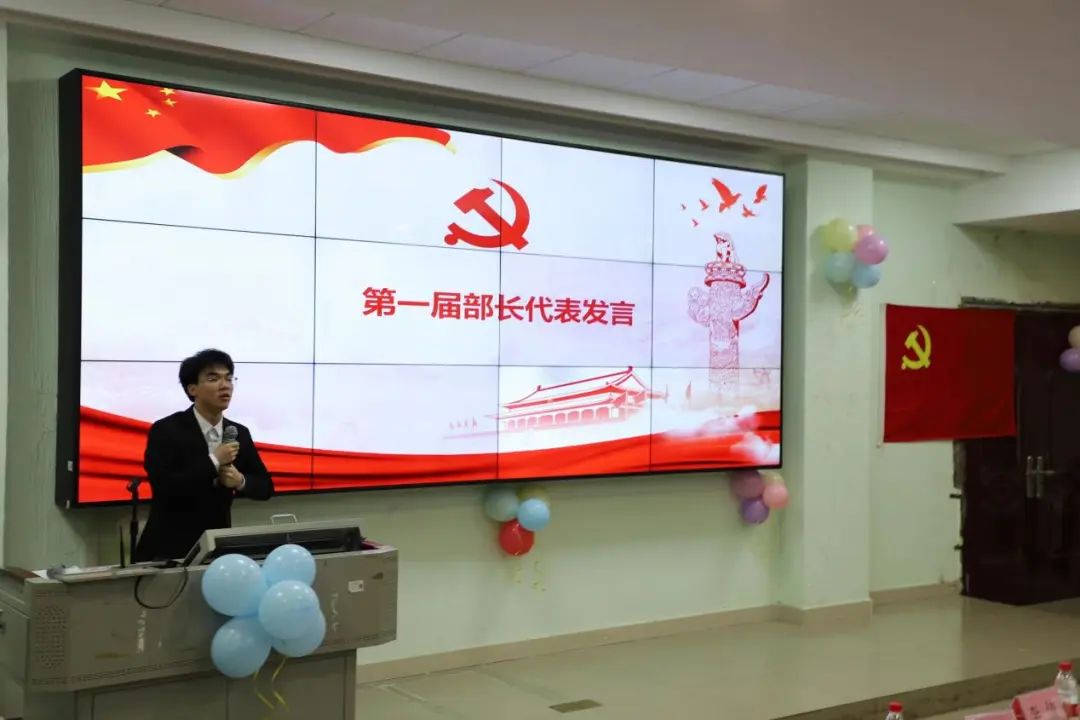 宣传部部长代表古许豪师兄上台发言,古师兄讲述了宣传部的创立和发展过程,向大家传递了长江后浪推前浪的传承精神,并表示很满意现在宣传部的发展壮大。同时告诫党务的全体干部要戒骄戒躁,将党务这面旗帜挥舞的更加有力。