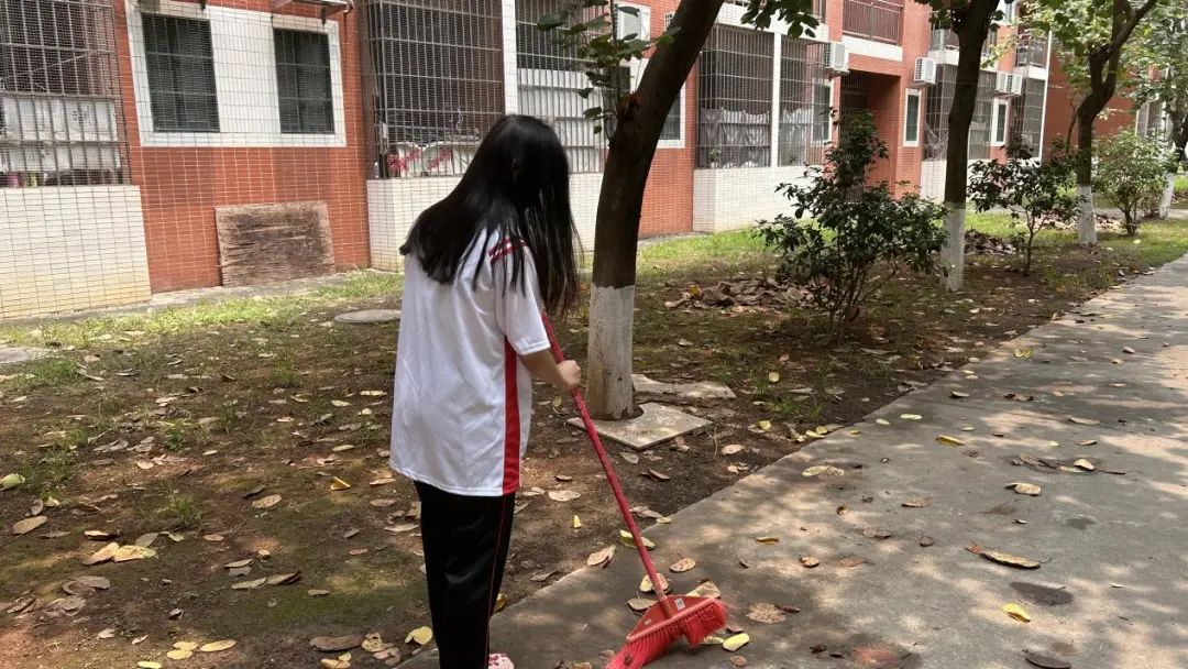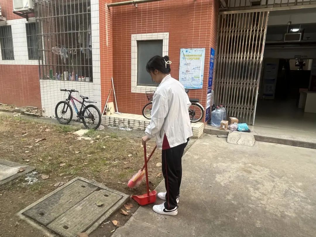 2023年4月21日,志愿者们在各栋宿舍楼下进行打扫,由于最近下雨的原因,导致路面湿漉漉的,树叶落了一地,垃圾也比较多,志愿者们拿起扫把,把宿舍楼下草坪上的落叶与垃圾都打扫的干干净净。