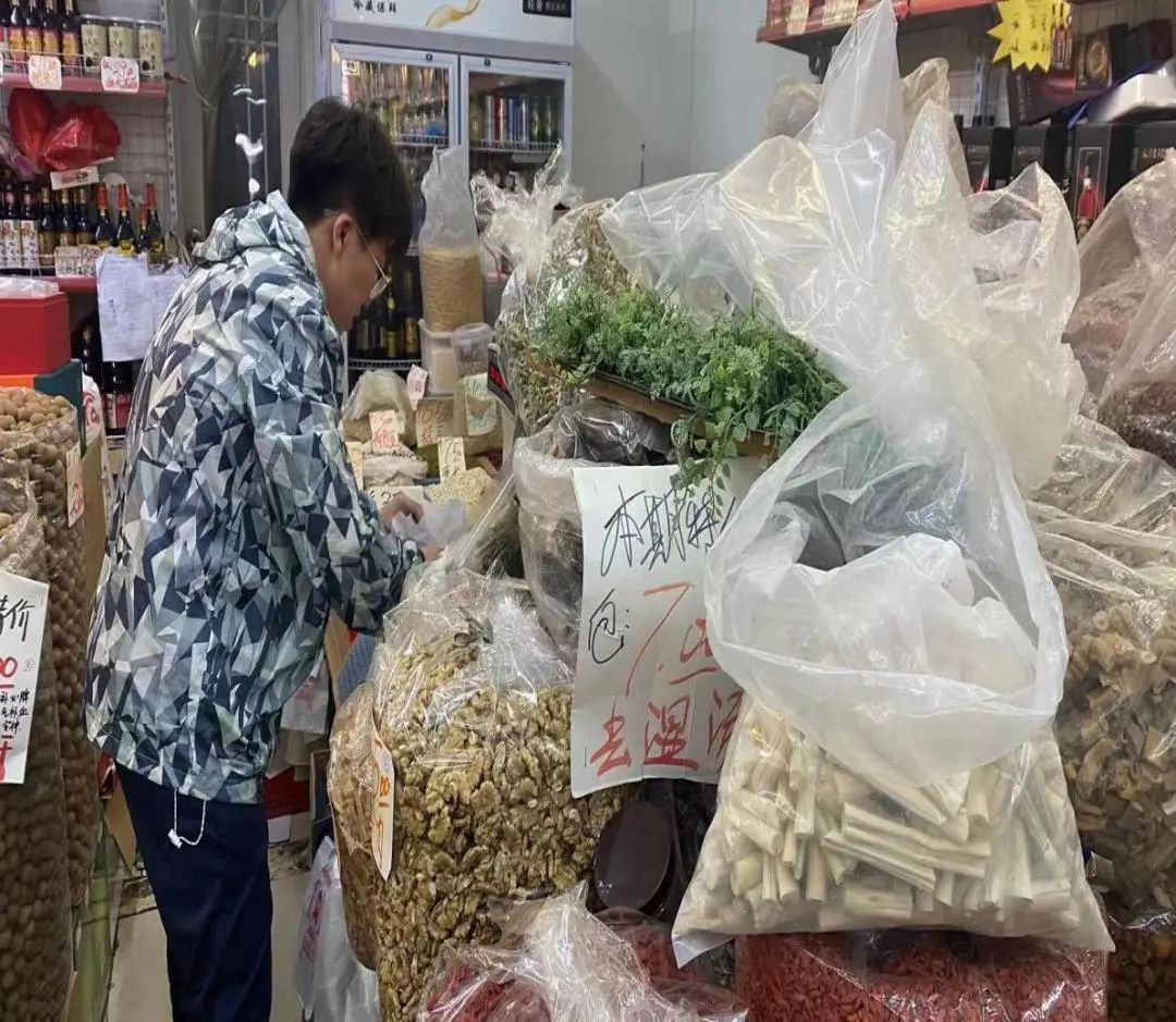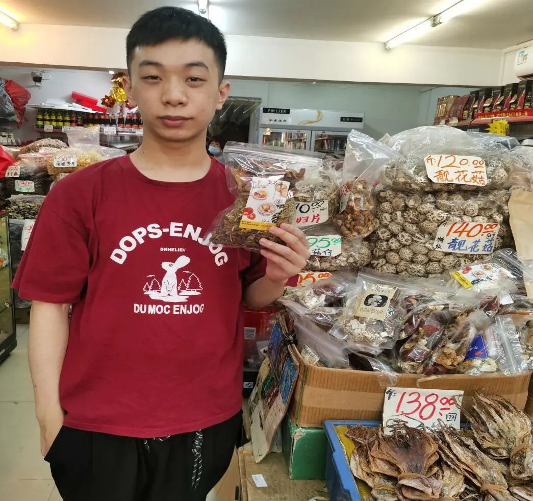 20中药学2班王元杰: “店里也有不少中药,虽然平时在书本里面似曾相识,但是在实际应用中还是很容易混淆。我可以分享一件趣事,第一天到店里老板娘让我找枇杷叶,我就把它和桑叶混淆了,因为两者长得很像,都有绒毛……在这里实习了这么久,最大的乐趣就是学会了怎么与顾客打交道,怎么耐心地指导顾客处理食材,有时候顾客对是否要买这种药材举棋不定的时候,我会用自己最大的热情和自己的专业知识去感染他们,说服客户购买药材。”