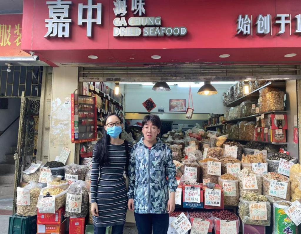 荔嘉食品店的店面不算特别大,但是“麻雀虽小,五脏俱全”,各种药材、干货琳琅满目,养生的汤包应有尽有。郑晓芬老师首先是被各式汤包吸引住了: 沙参玉竹百合汤养心安神、虫草人参汤滋补抗疲劳、海马田七汤促进儿童增高、红枣花胶汤滋补养颜……不同功效的汤包都有出售,让人目不暇接。据店里的老板娘介绍,这些汤包都是他们自家店根据药材的性味归经组合配制而成的,有些汤方是老板娘参照广东省中医院官方推荐进行配制的,不同汤包有不同的功效,任君选择。