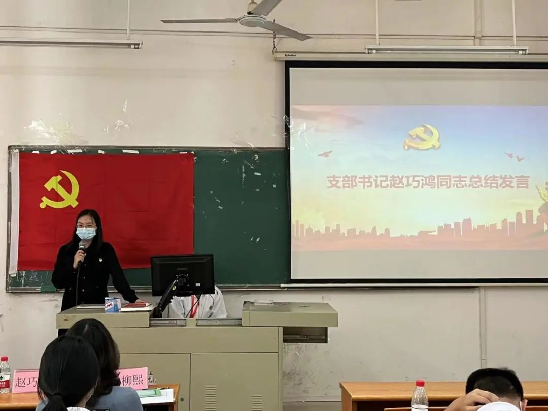 大会第五项议程:学生第二党支部赵巧鸿书记为此次大会做总结发言。积极向党组织靠拢是一个非常正确的选择,加入中国共产党也是一件无上光荣的事情,希望各位同志严格要求自己,不忘初心,牢记使命,不断提升实践能力,坚持全心全意为人民服务,坚持为群众办实事。