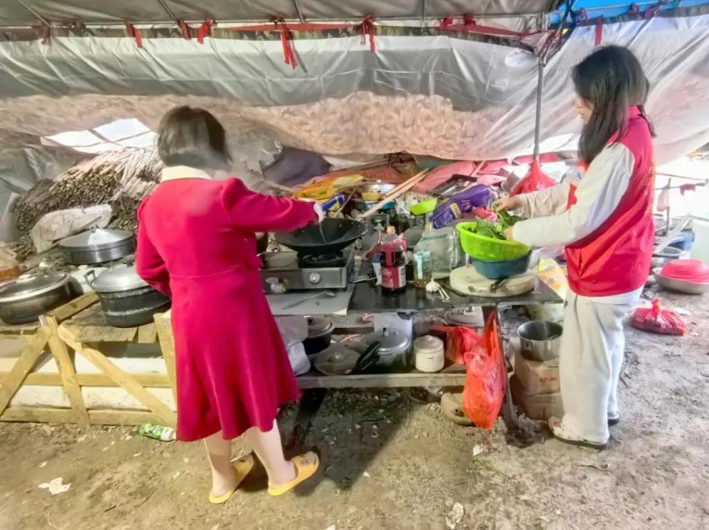 活动中,招泳欣同志主要协助村委会干部开展工作,负责打扫卫生、与老人交谈、询问和记录老人身体状况和发放年货等工资。