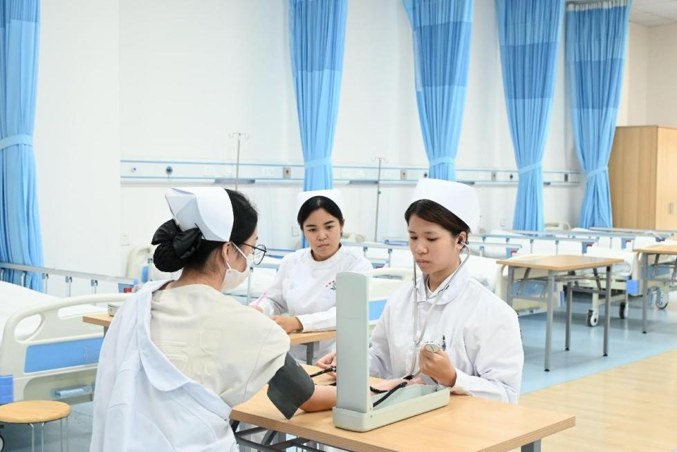 图为健康医学院护理专业师生参加 2024—2025年度广东省职业院校学生 专业技能大赛老年护理与保健赛项(高职组)
