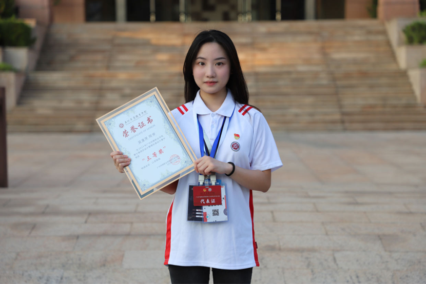 一分耕耘一分收获,她始终相信一名优秀的大学生不仅在学术上要有过硬本领,在其他方面也要争做一名德智体美劳的大学生。在校期间荣获4项国家级奖项、5项省级奖项、4项区级荣誉、校院活动40余次就是她大学生活中忙碌而又最充实的真实写照。