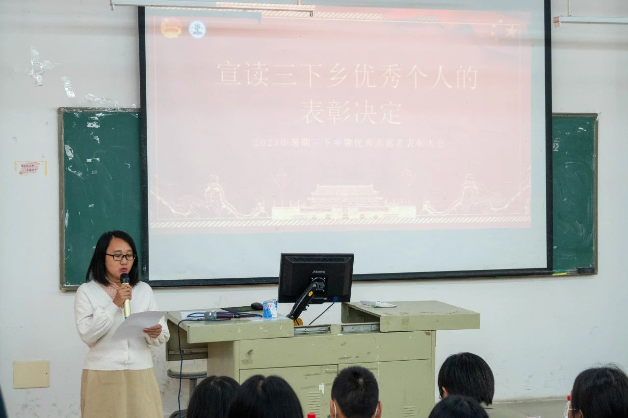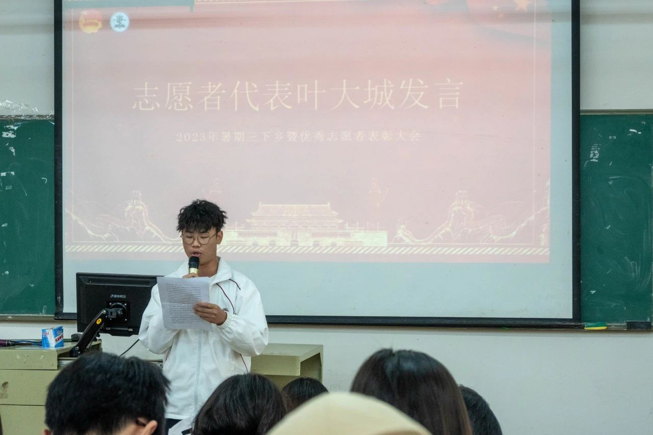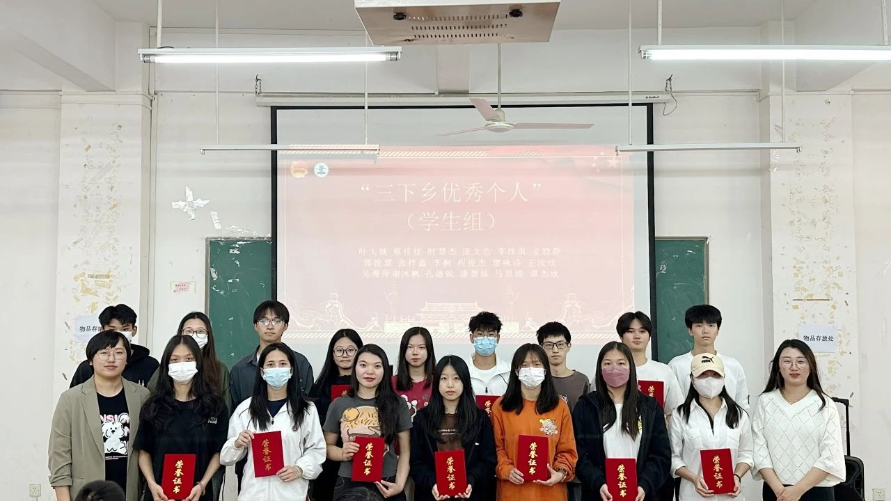 除了暑期三下乡社会实践,在过去的一学年里,我院也涌现出一批积极奉献,热心志愿服务的优秀学生,他们的身影活跃在各类校内外志愿活动中。为表彰先进、树立典型,彰显榜样的力量,总结和凝练优秀社会实践成果,鼓励和表彰每一位付诸努力的志愿者,我院青年志愿者协会于2023年12月11日在博学楼C201举行2023年暑期三下乡暨优秀志愿者表彰大会。