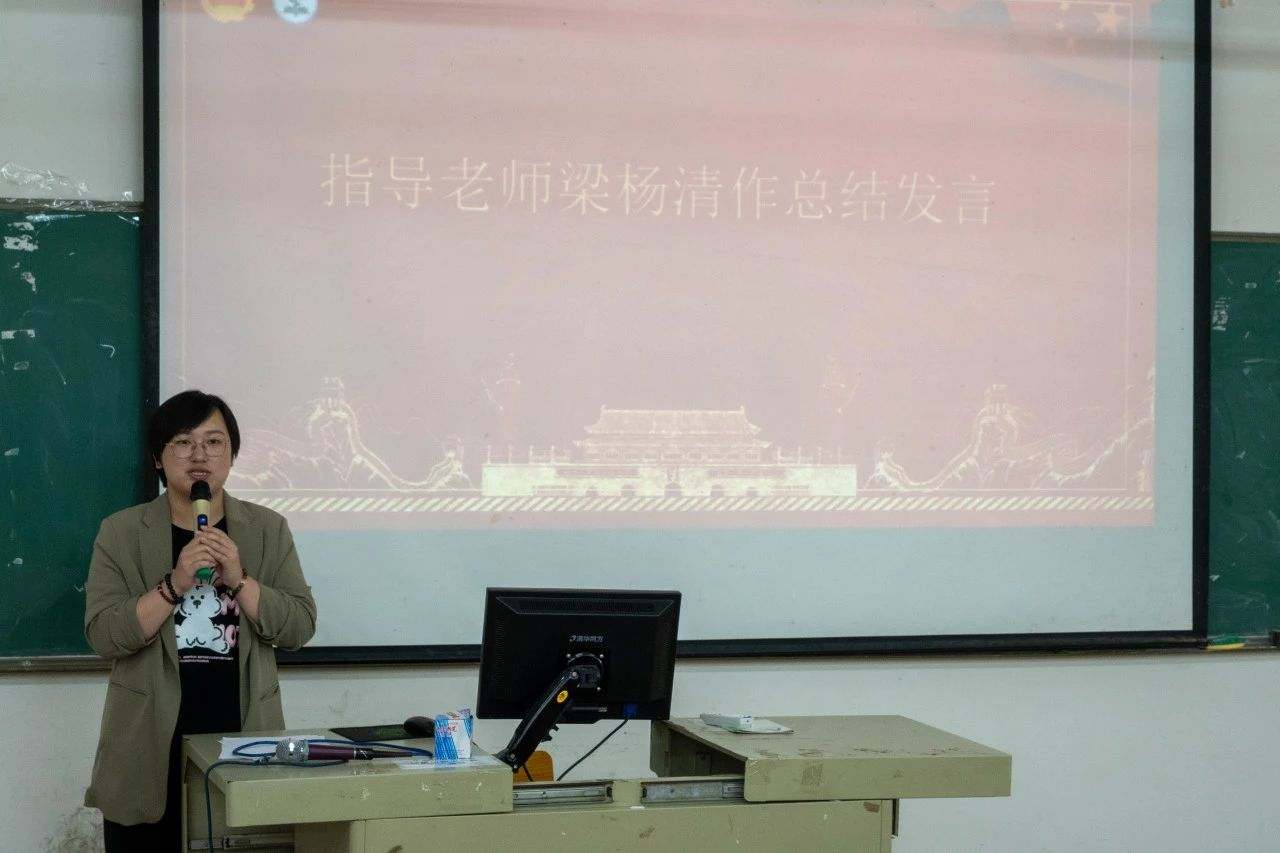 梁杨清老师在总结中讲到,在暑期“三下乡”社会实践活动中,广大青年学生以真情服务当地百姓群众,用实际行动为地方建设贡献力量。她希望同学们再接再厉勇往直前,认真总结经验,分享成果感悟,不断创新探索,也希望有更多的同学加入社会实践活动中来,把握机遇,锻炼自我,服务大众,回馈社会,在社会实践中实现自身价值!