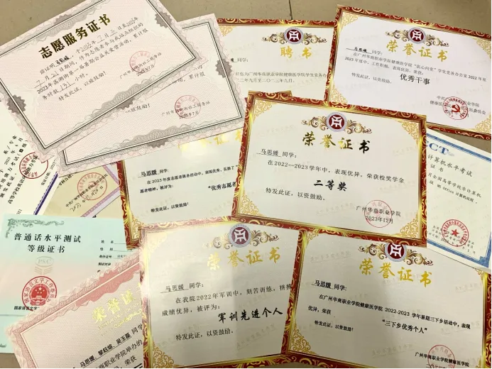 学习上,马思媛同学认真主动学习专业文化知识,学年平均绩点为3.27,综合测评89.2分,位列专业排名第七,并获得2022年-2023年度二等奖学金。课余时间自主学习考取了“普通话等级证书”“英语B级证书”“计算机一级证书”和其他技能证书。