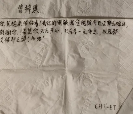 注:图为病人写给曾梓琪的感谢信